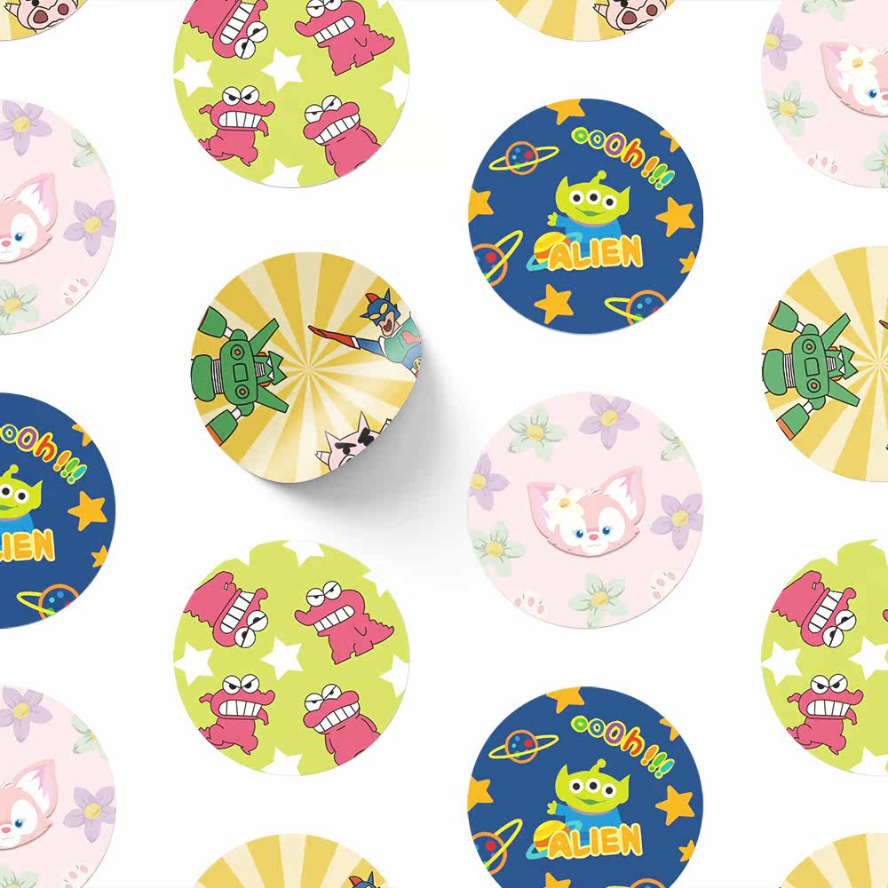 圆形卡通贴纸蜡笔小新动感超人贴画玲娜贝儿三眼仔ins手账封口贴