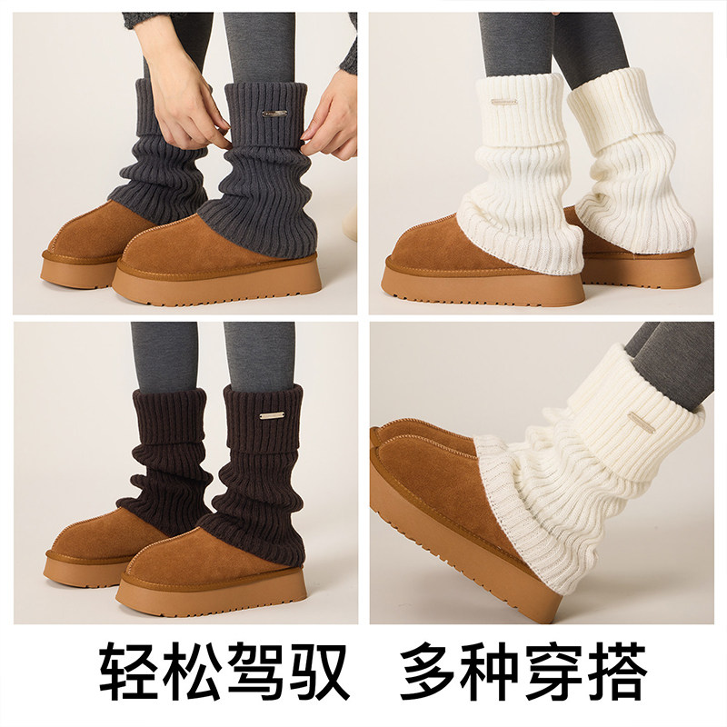 针织腿套女冬季加厚保暖白色袜套配雪地靴女生堆堆袜秋冬款小腿袜