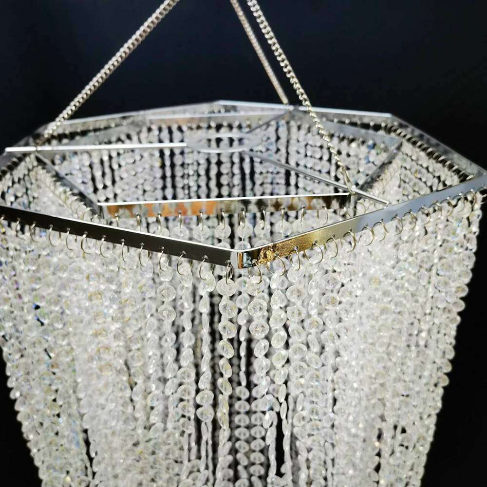 新款婚庆道具亚克力水晶珠帘枝形吊灯六边形婚礼场地布置装饰灯