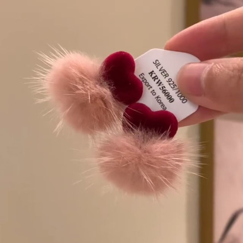 适合冬天戴的耳环~软fufu毛绒毛球爱心红色耳钉新年红耳饰耳夹