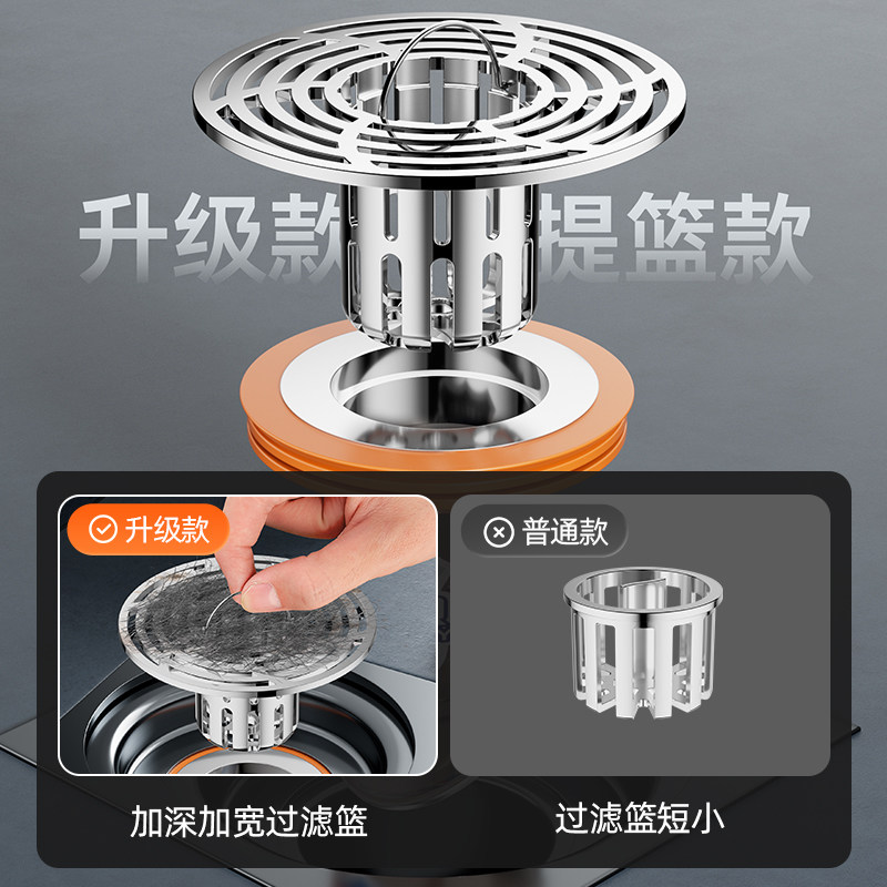 地漏加厚不锈钢防臭五金过滤芯卫生间阳台全铜下水道洗衣机浴室