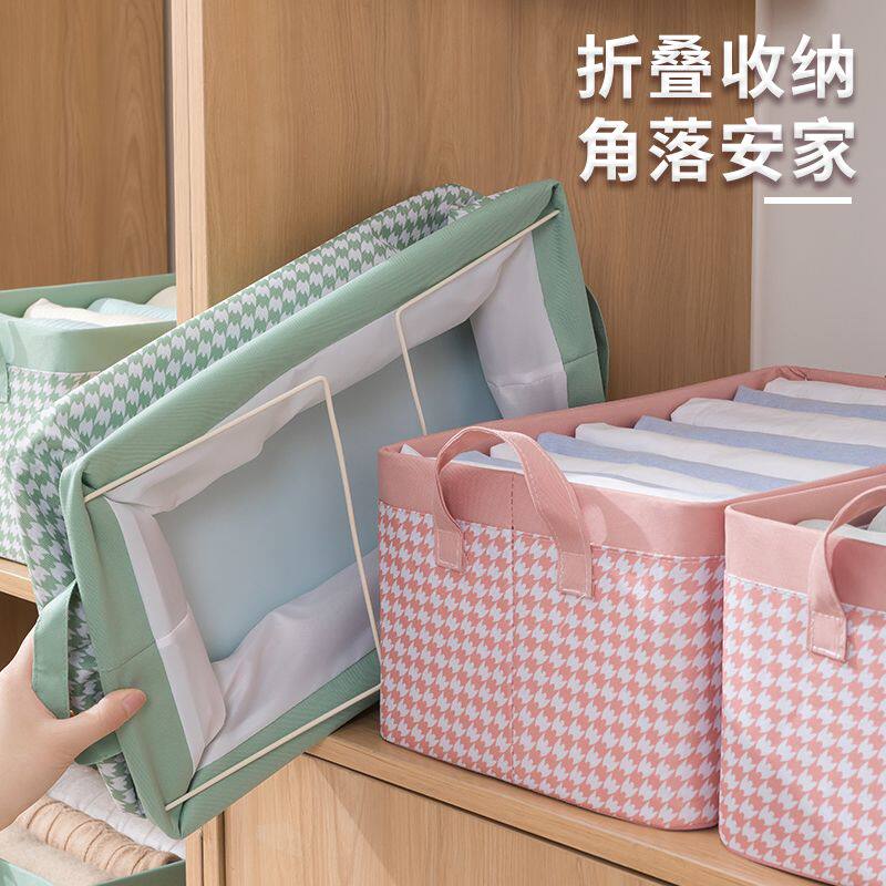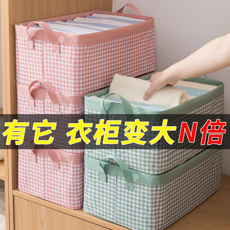 衣服收纳箱千鸟格家用衣柜分层整理收纳神器放衣物布艺折叠收纳筐
