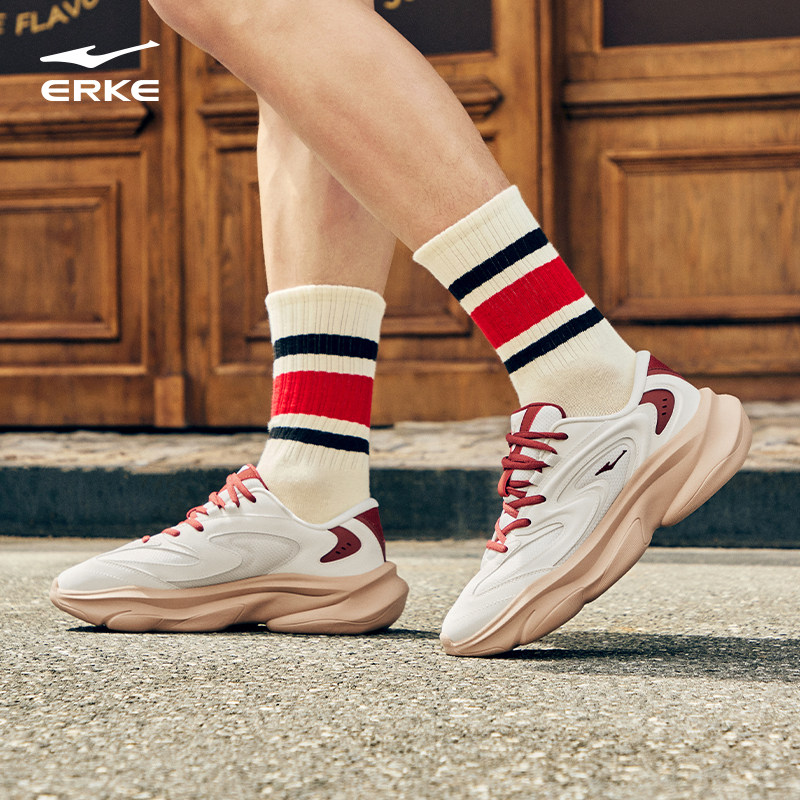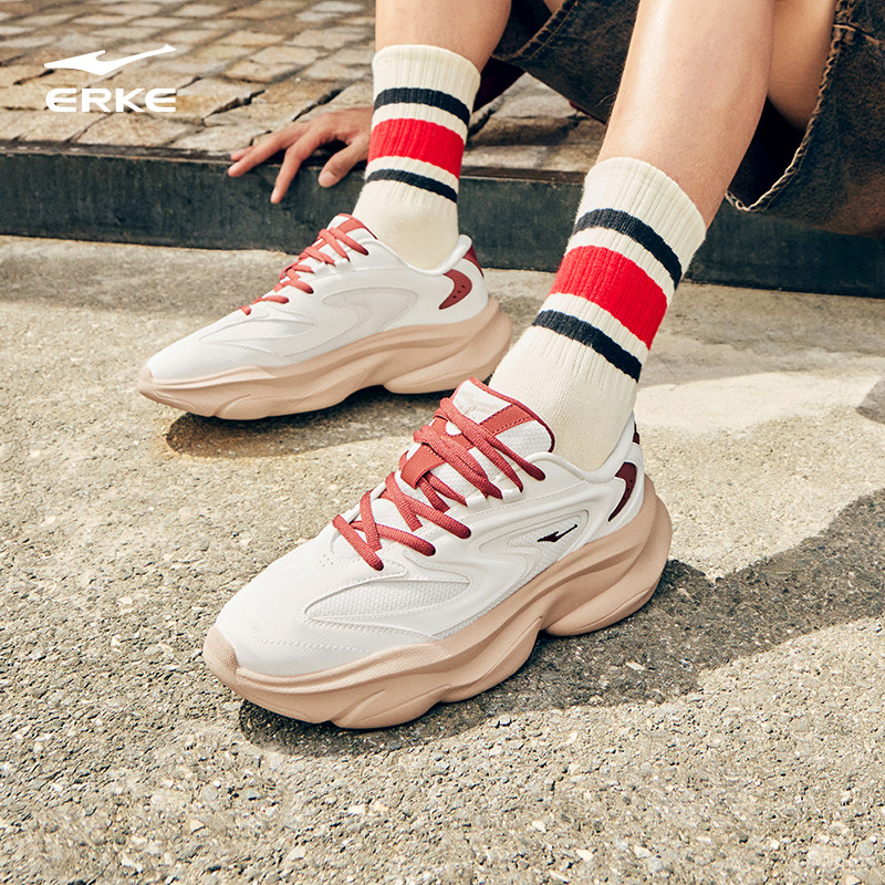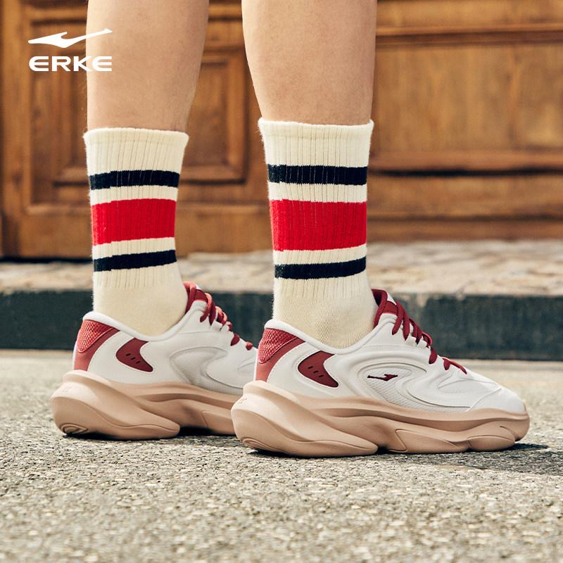 鸿星尔克逍游2运动鞋新年款男鞋红色软底老爹鞋复古潮流休闲鞋