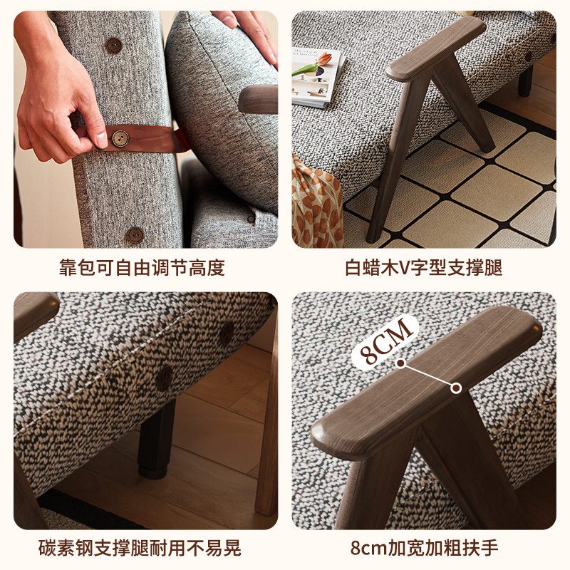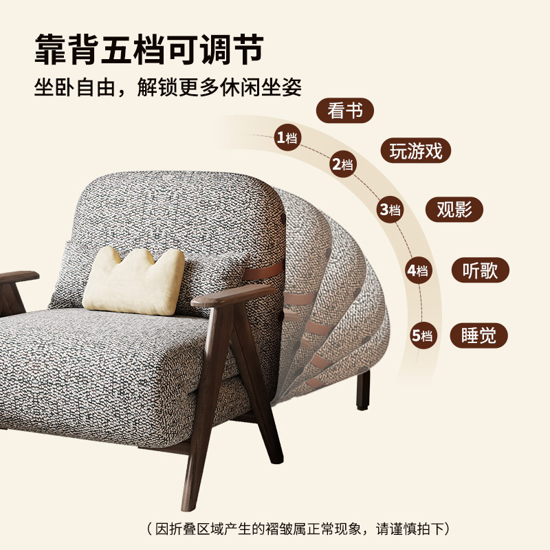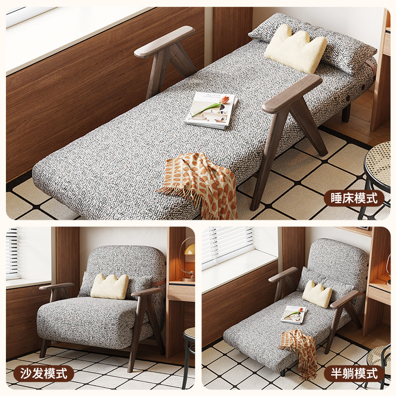 木宫匠单人沙发床客厅可折叠两用实木沙发小户型中古风功能沙发床