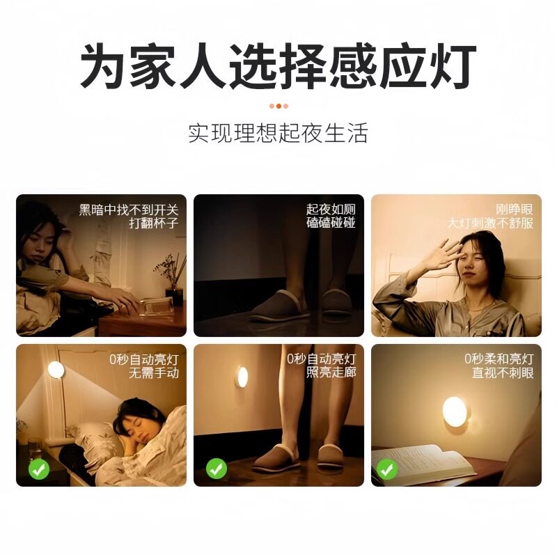人体自动感应灯小夜灯卧室床头充电人来即亮厕所楼梯夜灯睡眠夜间