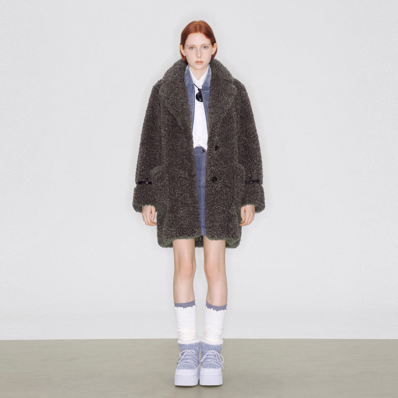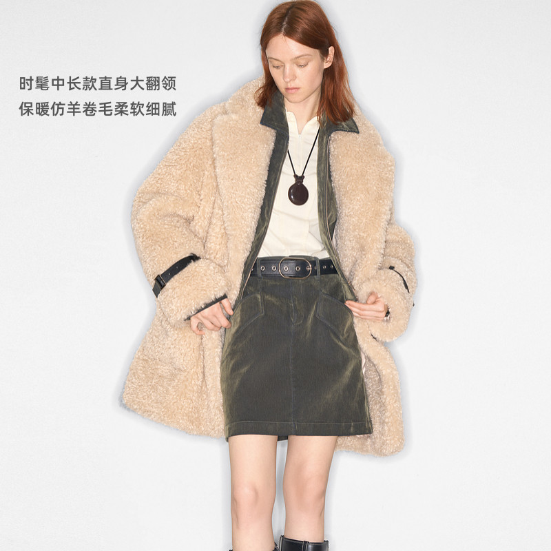 lost in echo2025冬季新款气质宽松大翻领仿羊卷毛中长皮草外套