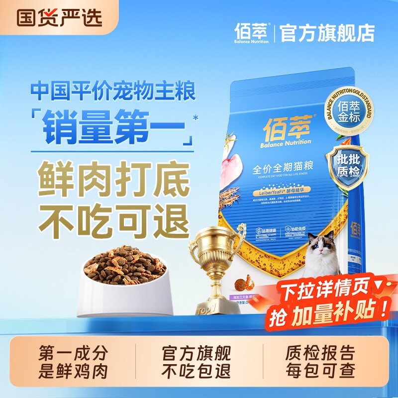 佰萃猫粮旗舰正品10kg三文鱼磷虾金标平价实惠鲜肉销量成猫肠胃