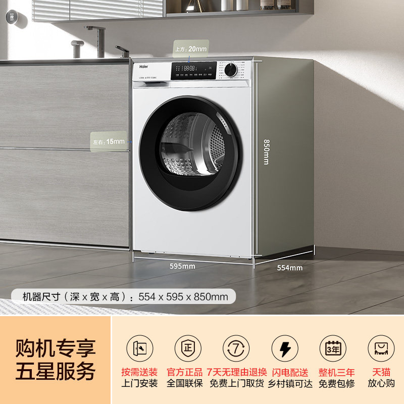 [129W升级款]海尔烘干机烘衣服10kg超薄全自动滚筒热泵干衣机519W