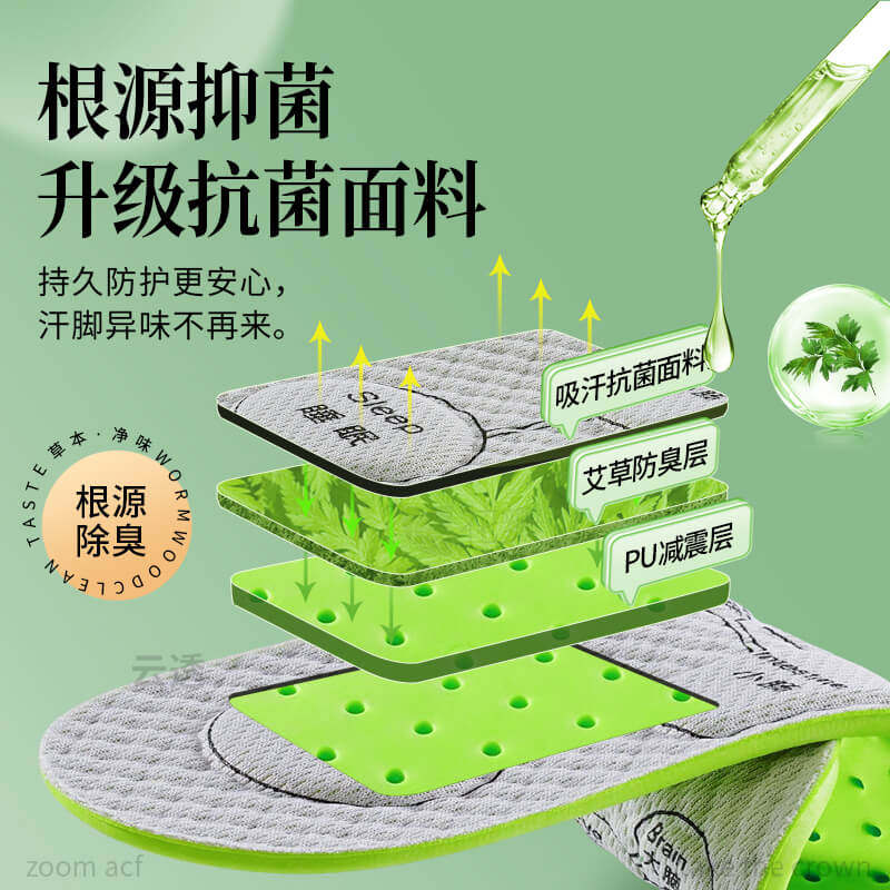 艾草除臭鞋垫按摩男士吸汗防臭女款软底舒适运动气垫减震透气防滑