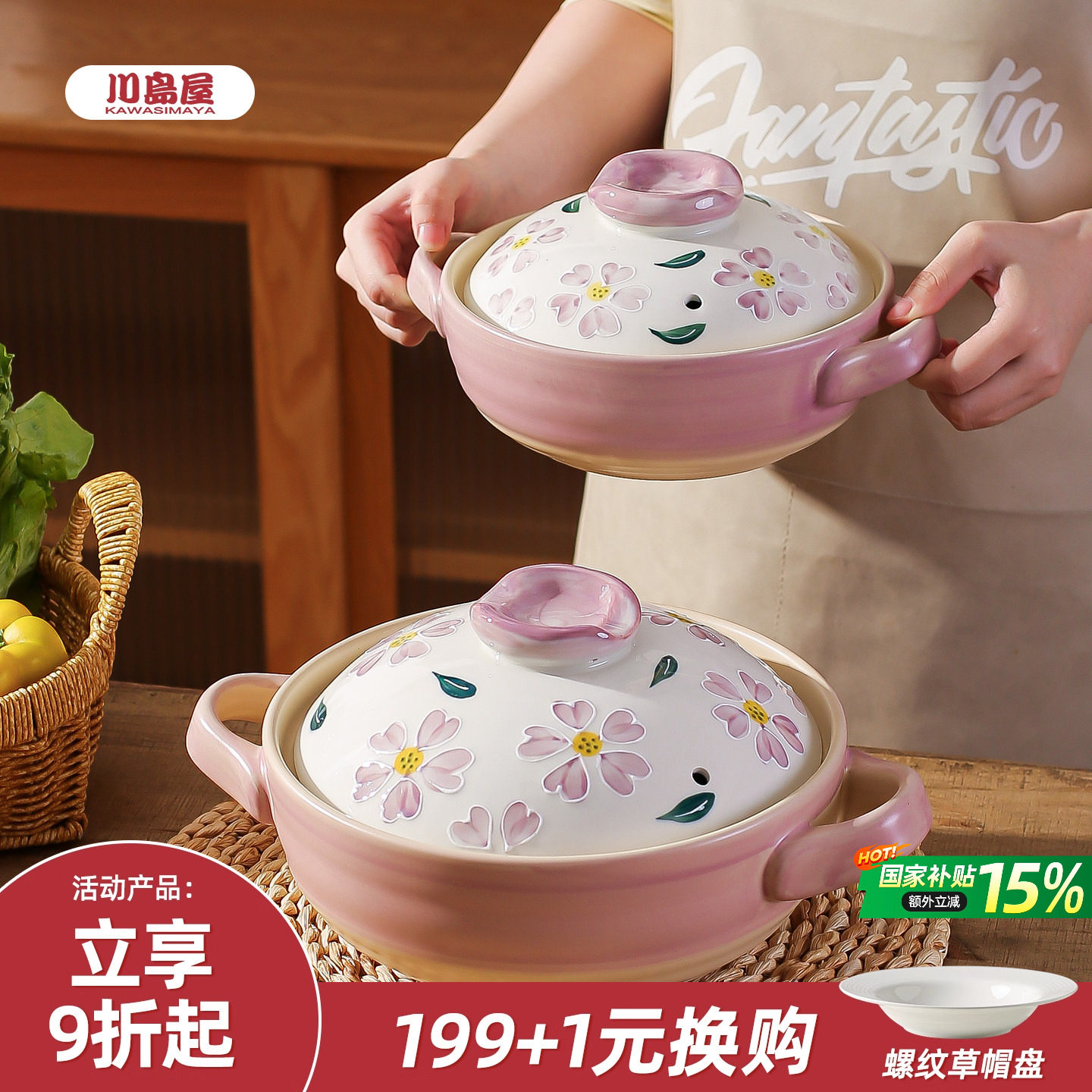 川岛屋日式砂锅煲家用耐高温干烧不裂燃气灶专用煲汤锅煲仔饭沙锅