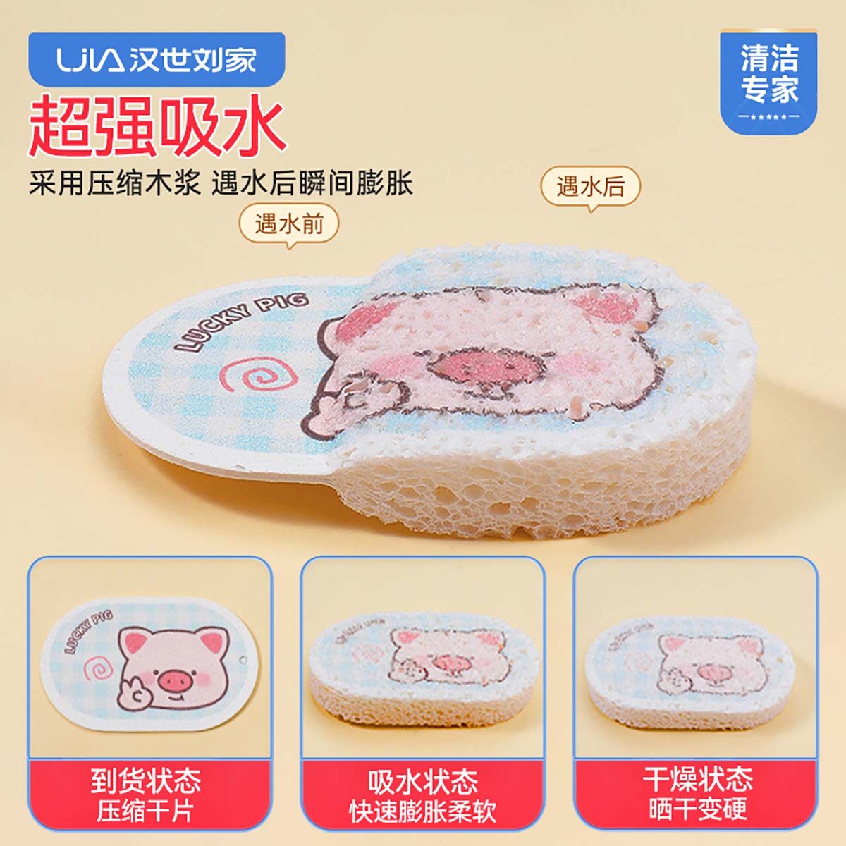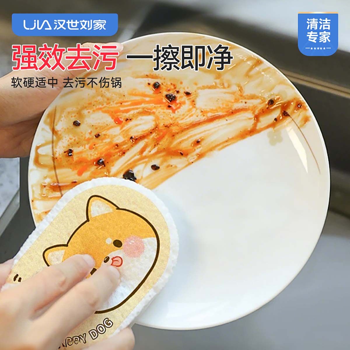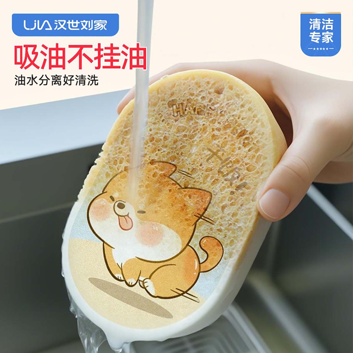 汉世刘家卡通木浆海绵擦洗碗耐用加厚厨房洗碗神器百洁布刷锅清洁
