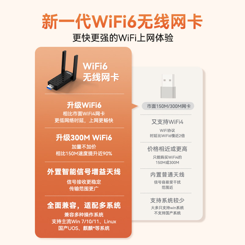 台式机wifi6笔记本电脑USB无线网卡新款免驱主机天线发射随身接收器免驱动家用无线网络信号发射上网