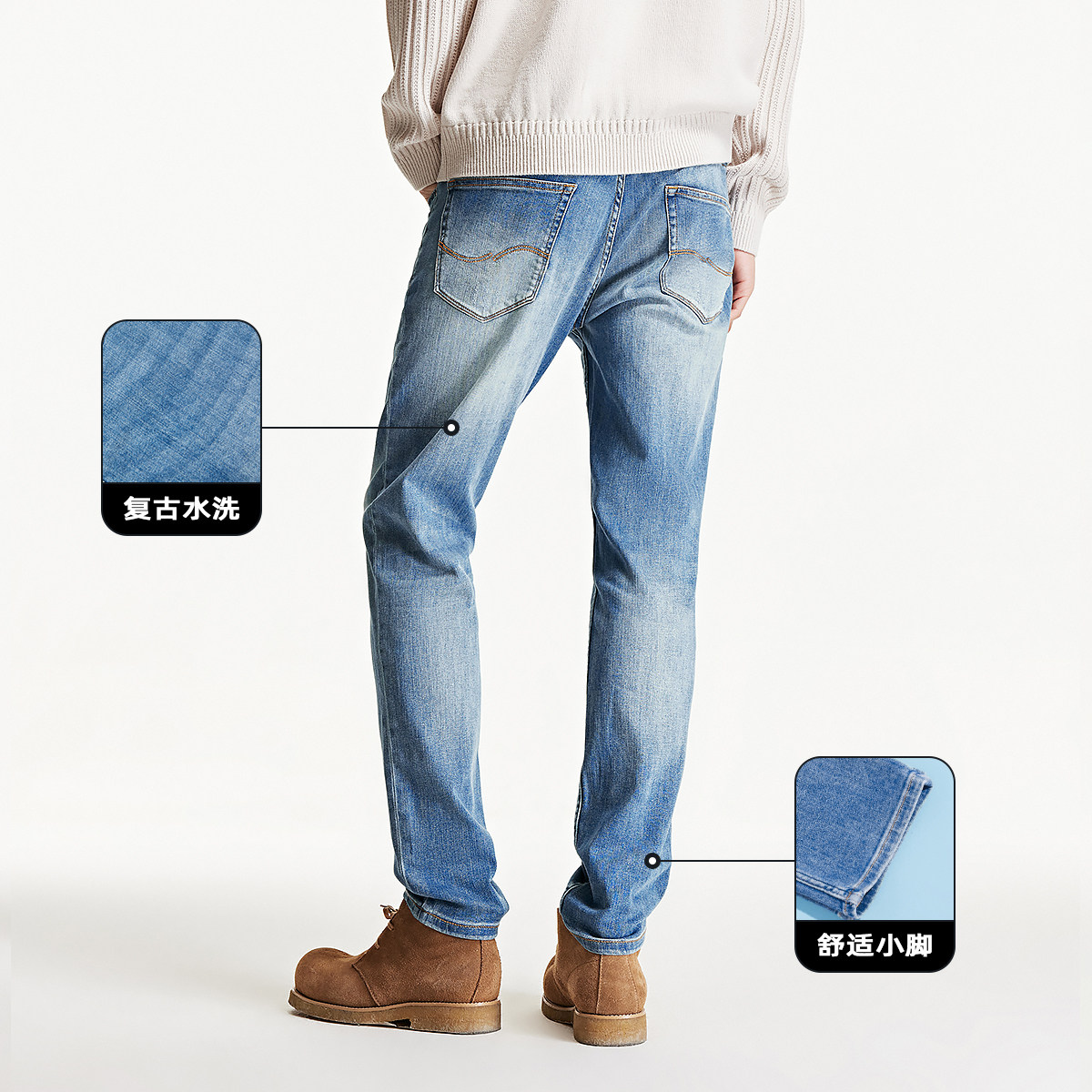 杰克琼斯春秋新款牛仔裤男修身小脚弹力蓝色裤子合体复古长裤男装