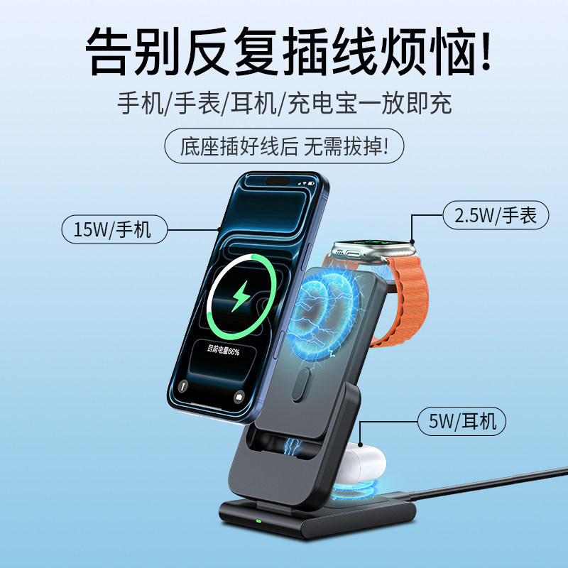 magsafe磁吸三合一无线充电器 带磁吸充电宝