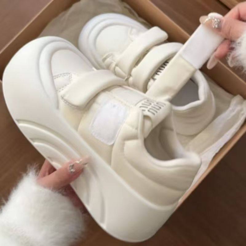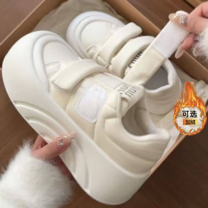 魔术贴厚底松糕增高大头小白鞋女2026秋冬季学生爆款加绒板鞋百搭