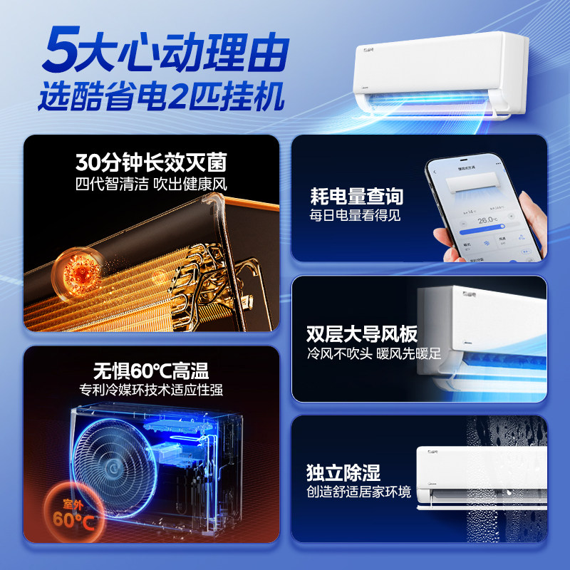 美的空调家用2匹挂机新一级变频酷省电冷暖两用官网官方旗舰店
