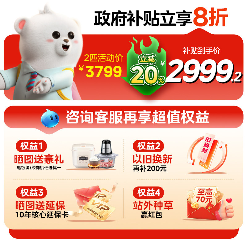 [国补20%】海尔空调3匹2匹大挂机家用客厅一级能效变频冷暖旗舰店