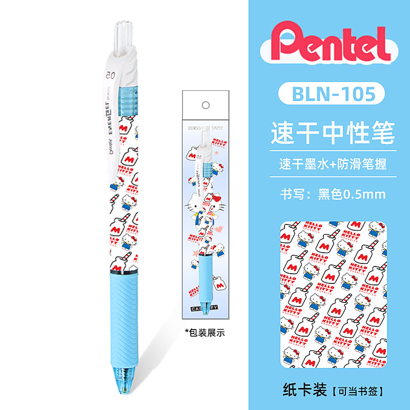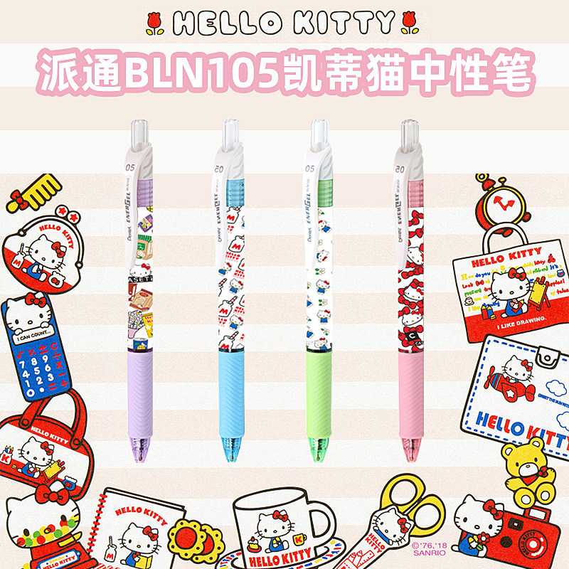 pente派通中性笔凯蒂猫DIY卡通动漫Kitty学生刷题速干黑色水笔0.5