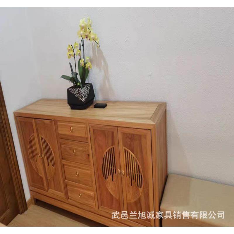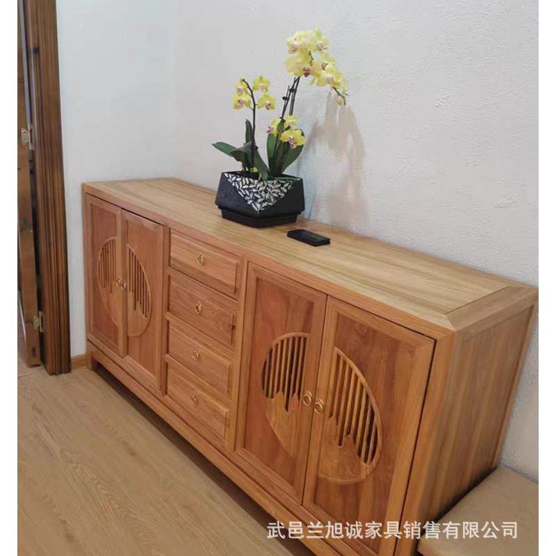 新中式家用实木餐边柜整装榆木茶水酒柜收纳储物柜客厅置物玄关柜