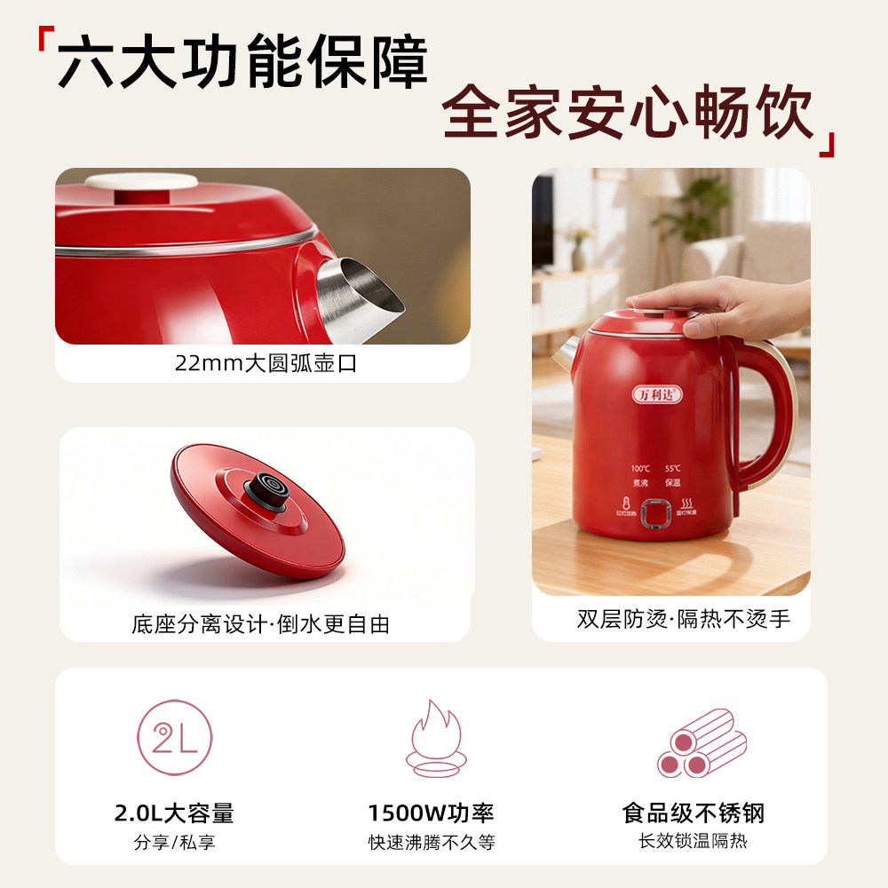 万利达烧水壶2026新款家用智能保温一体迷你电热煮开水壶电水壶