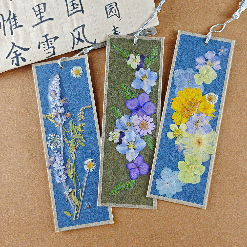 干花书签手工diy材料古风楮皮纸吊牌流苏创意材料包唯美别致压花装饰卡片花草标本少女心小清新花朵学生书签