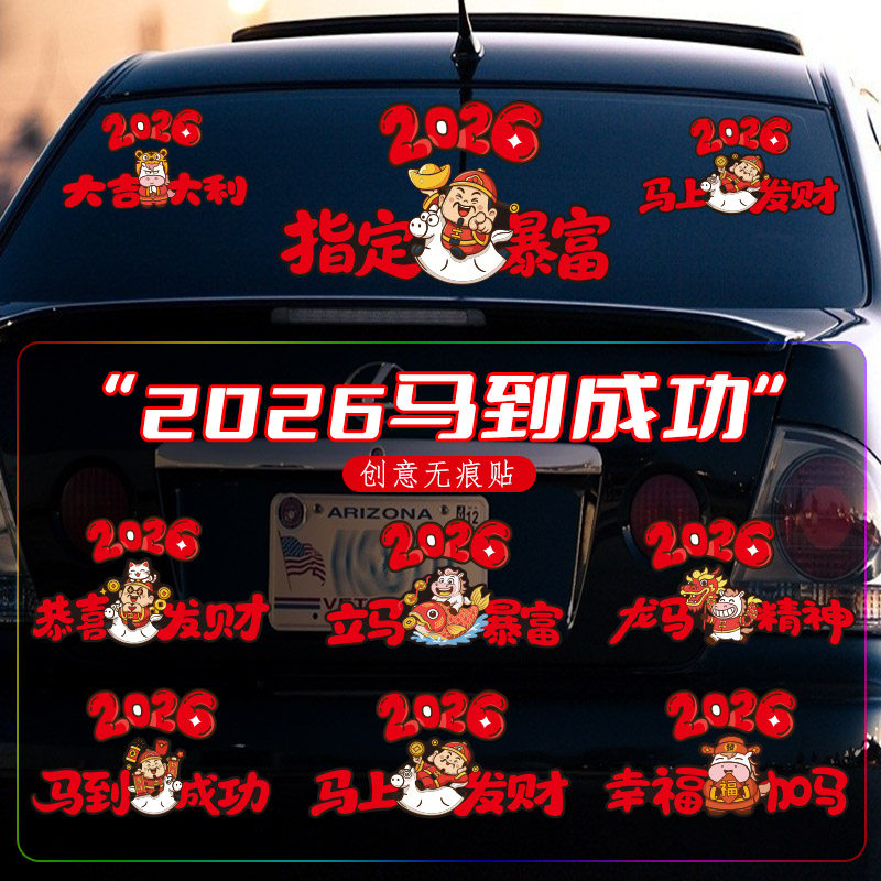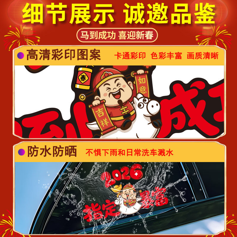 2026马年车贴过年汽车车身装饰财源滚滚春节汽车对联指定暴富车门