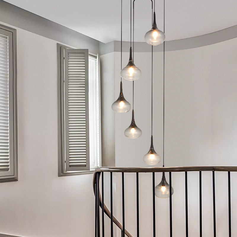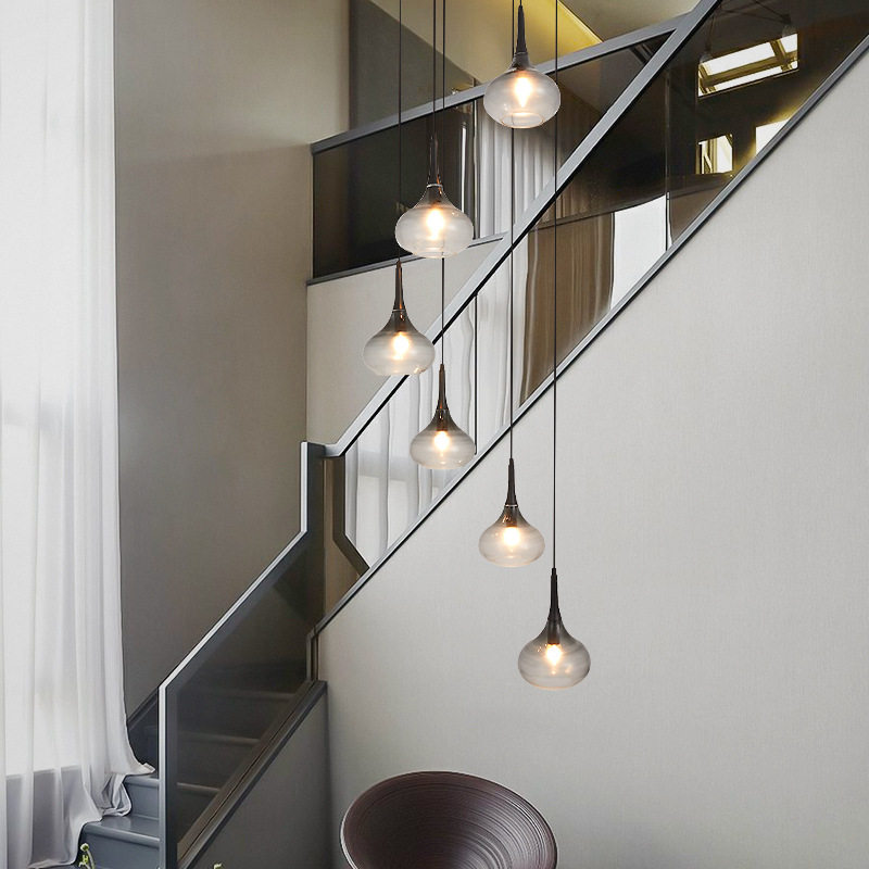 简约现代个性楼梯长吊灯复式别墅客厅餐厅楼梯间跃层创意螺旋吊灯