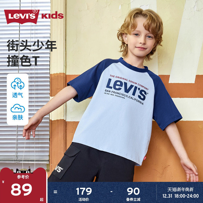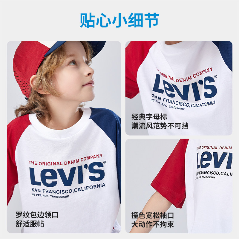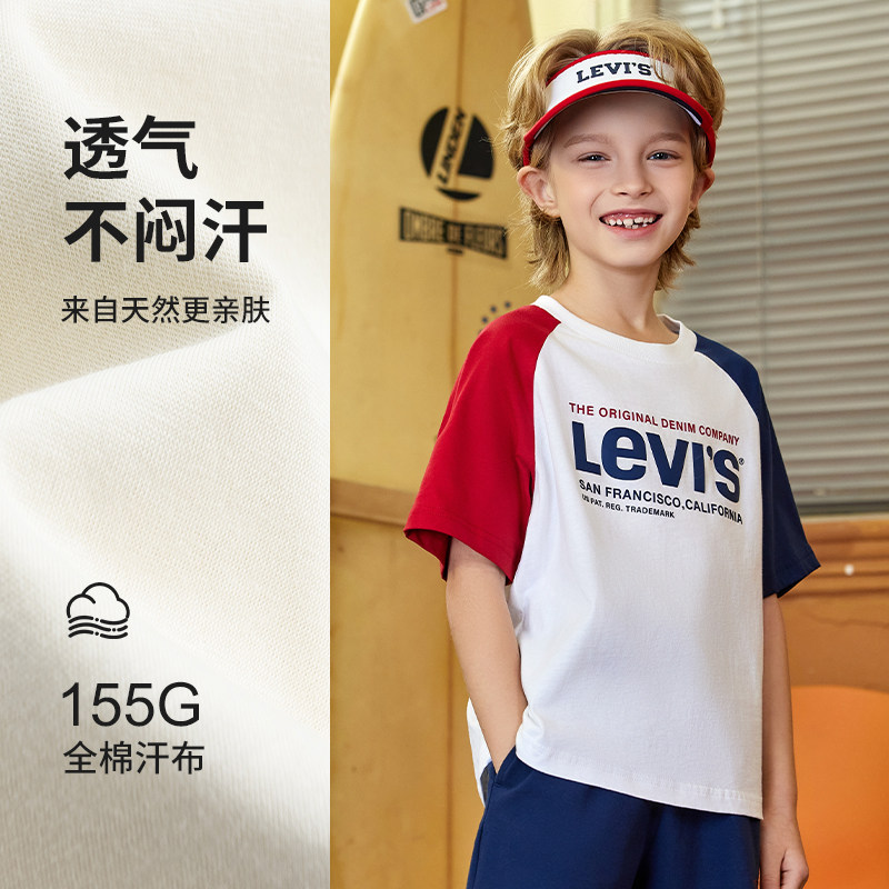 Levis李维斯儿童男童短袖T恤2025夏季新款透气半袖运动衣女生童装