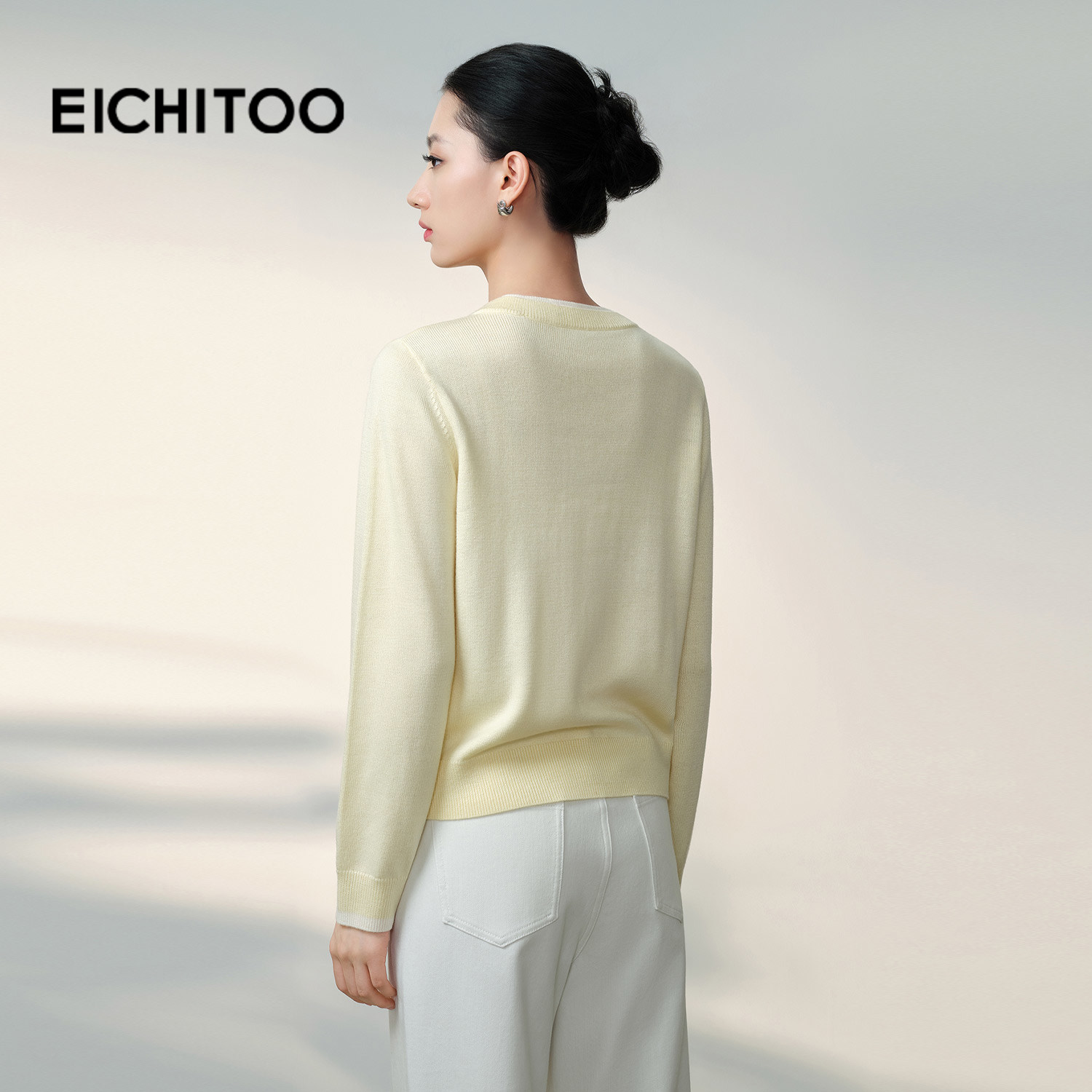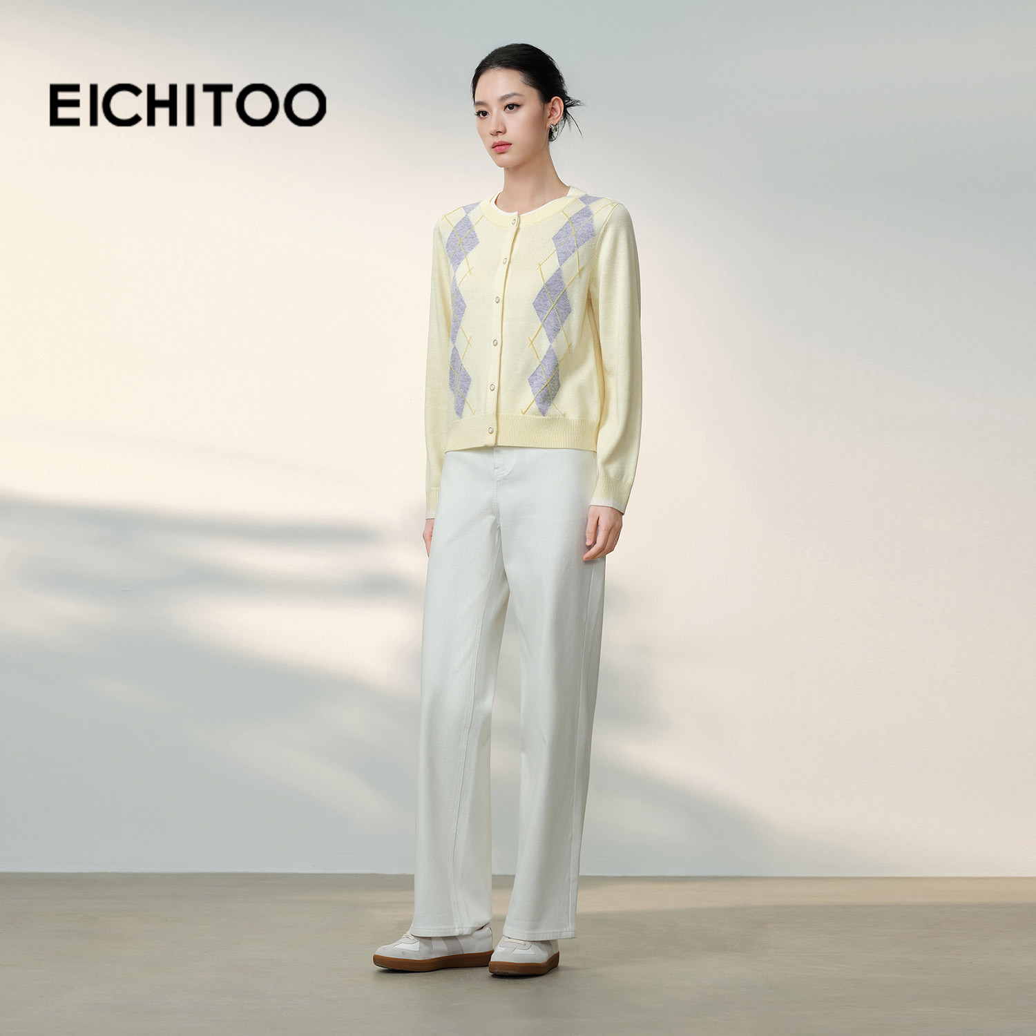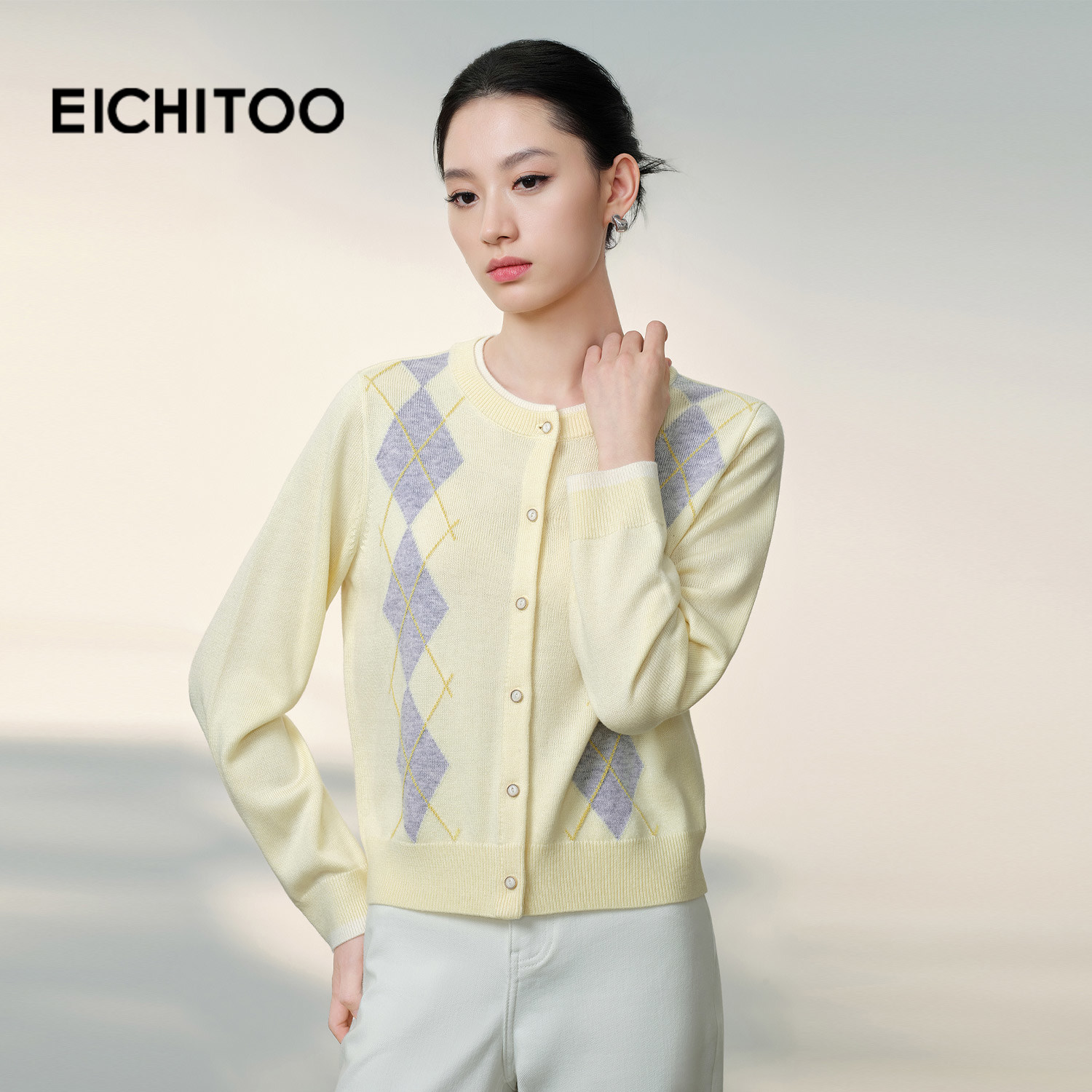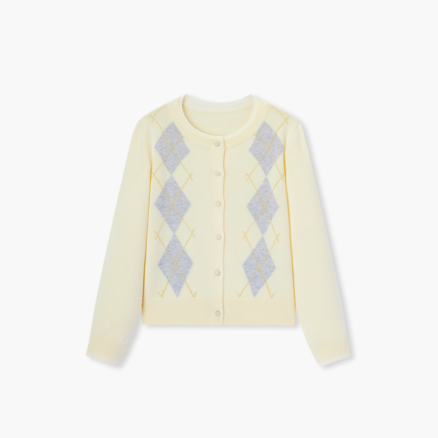 爱居兔学院风菱格软糯针织开衫女2026年春季新款撞色圆领毛衣外套