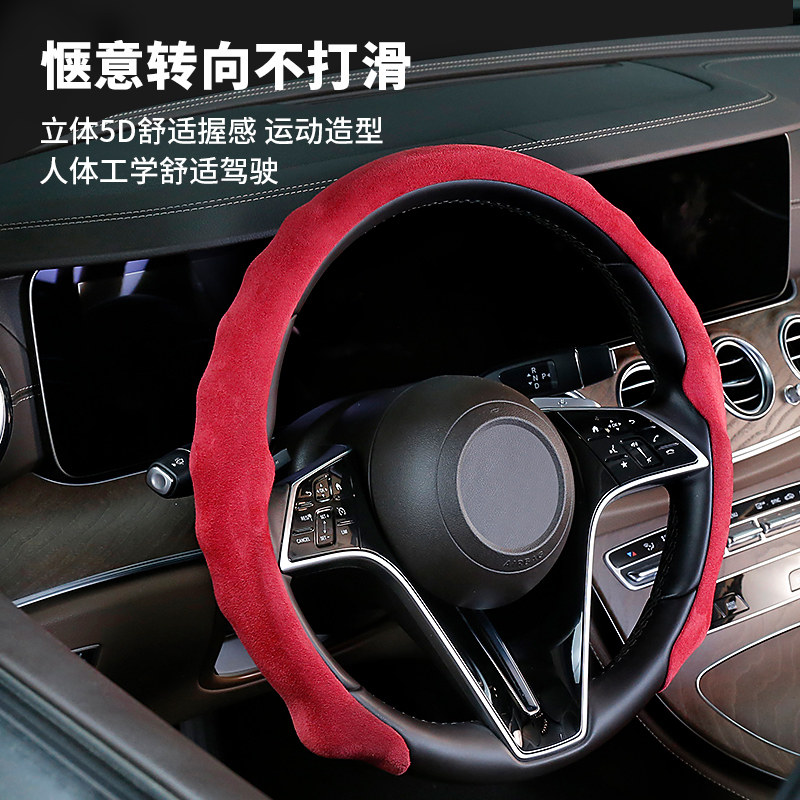 5D翻毛皮方向盘套卡是超薄四季通用男女麂皮汽车把套吸汗奥迪宝马