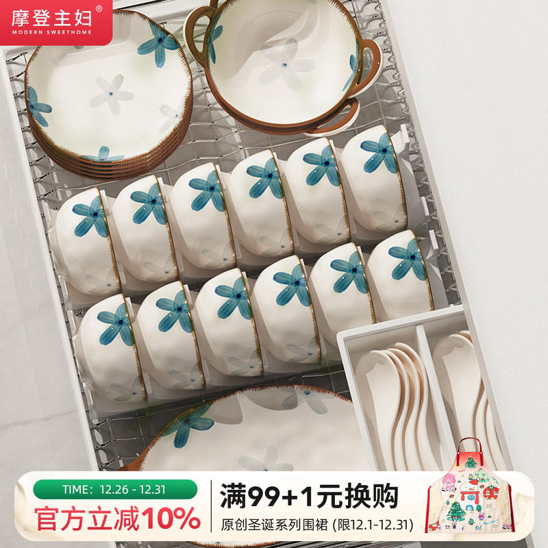 摩登主妇餐具2025新款日式高颜值乔迁新居釉下彩碟筷碗盘套装家用