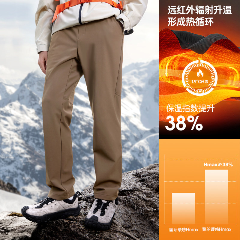 骆驼男装秋冬季2025男士休闲裤直筒抗皱加绒加厚保暖长裤子男