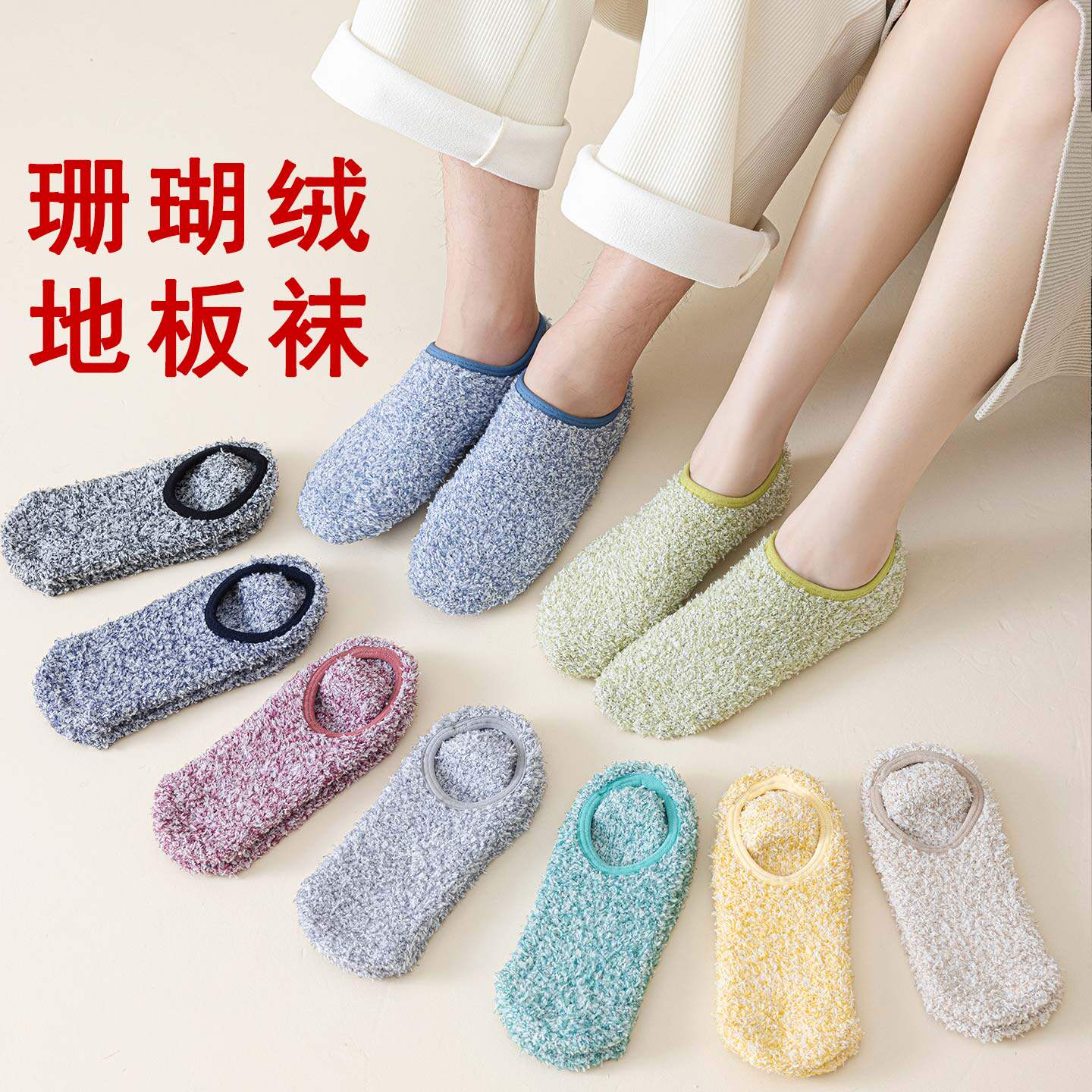 地板袜子成人秋冬珊瑚绒袜套男女加厚保暖情侣居家点胶防滑短船袜