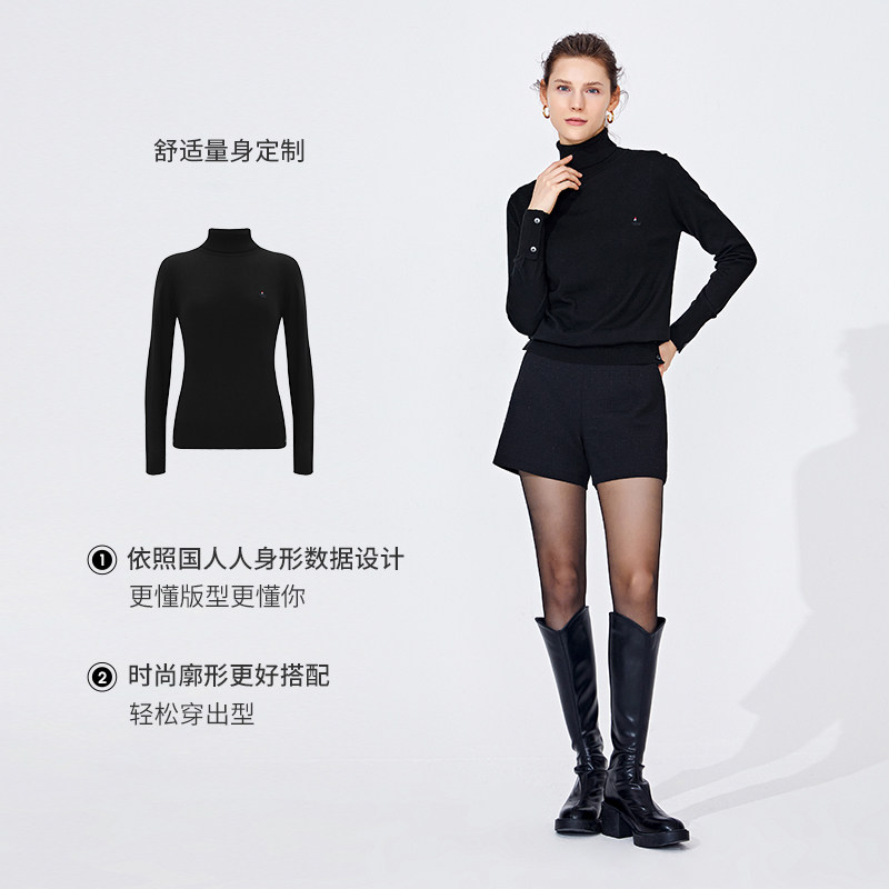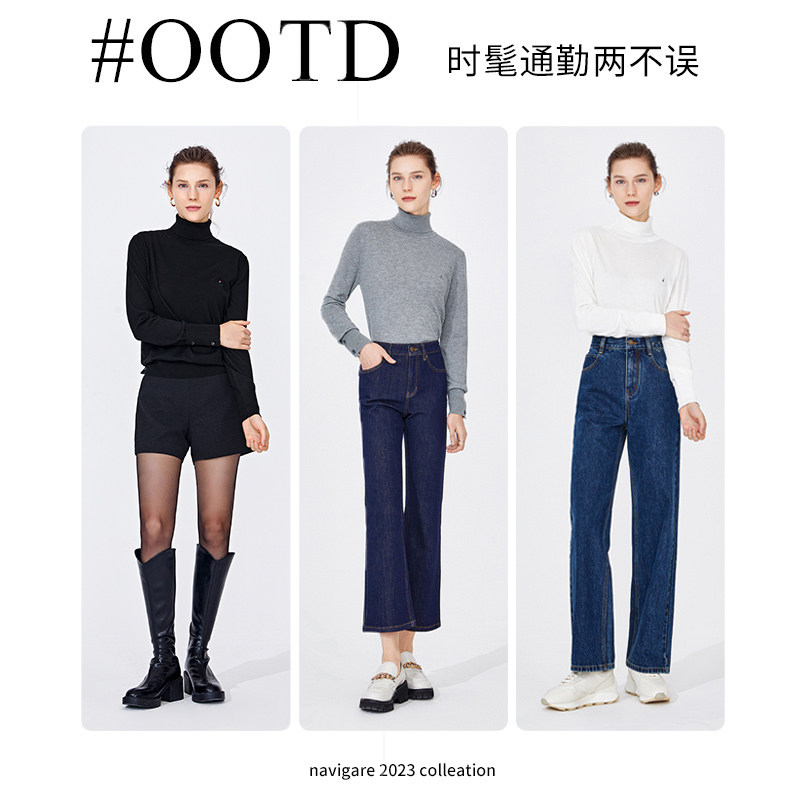 Navigare意大利小帆船高领针织衫女休闲内搭毛衣通勤修身打底衫女