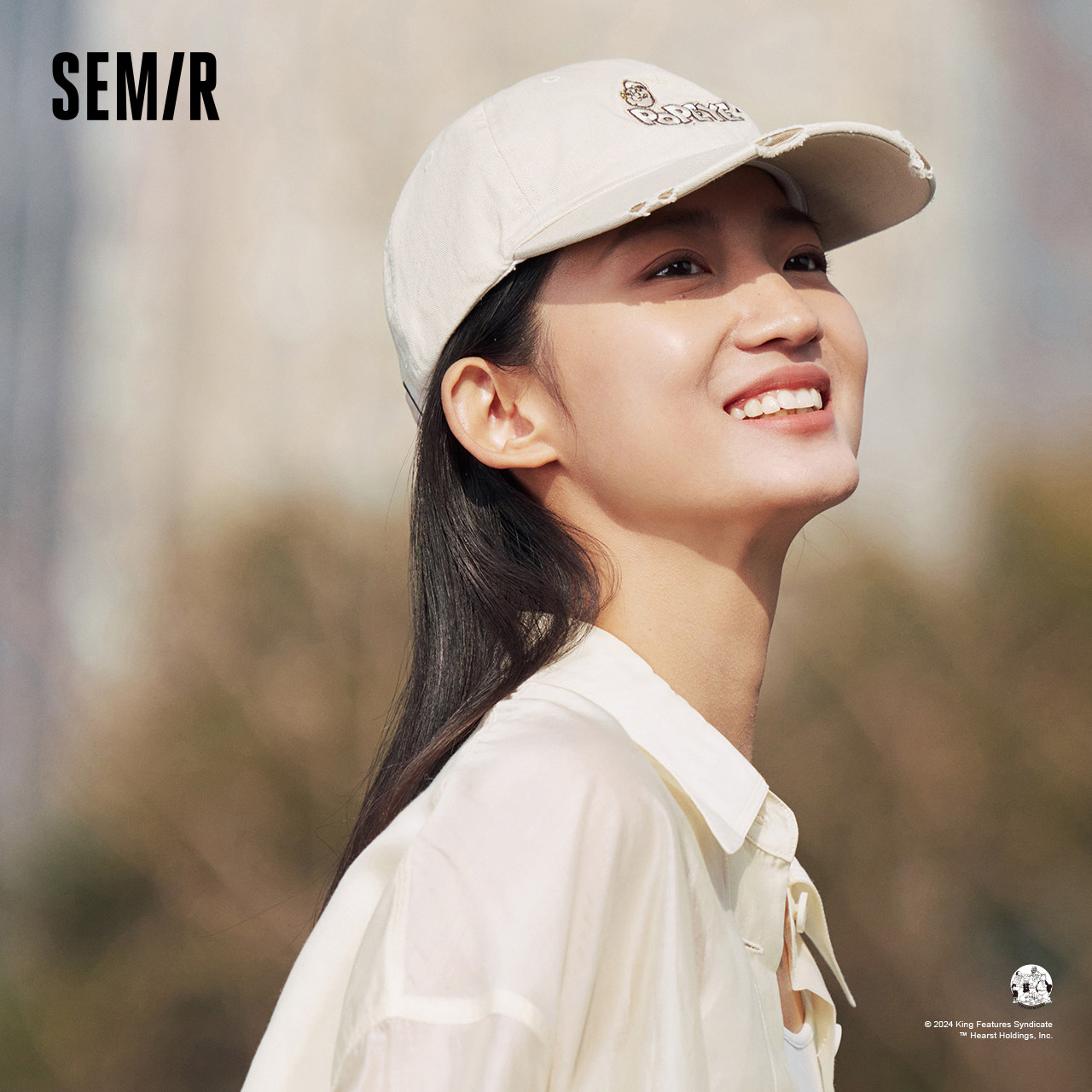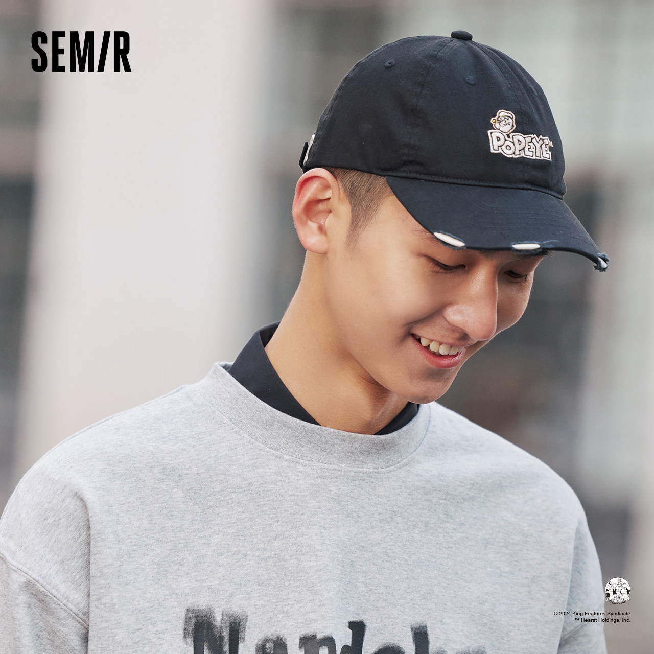 森马大力水手联名帽子男棒球帽2024新款中性破洞刺绣情侣遮阳帽