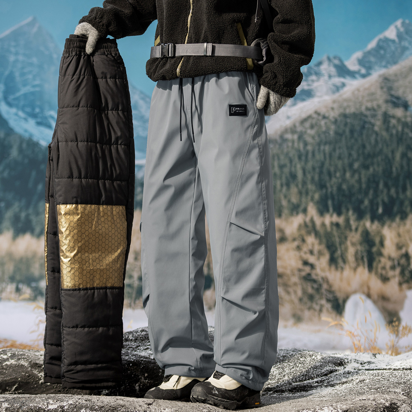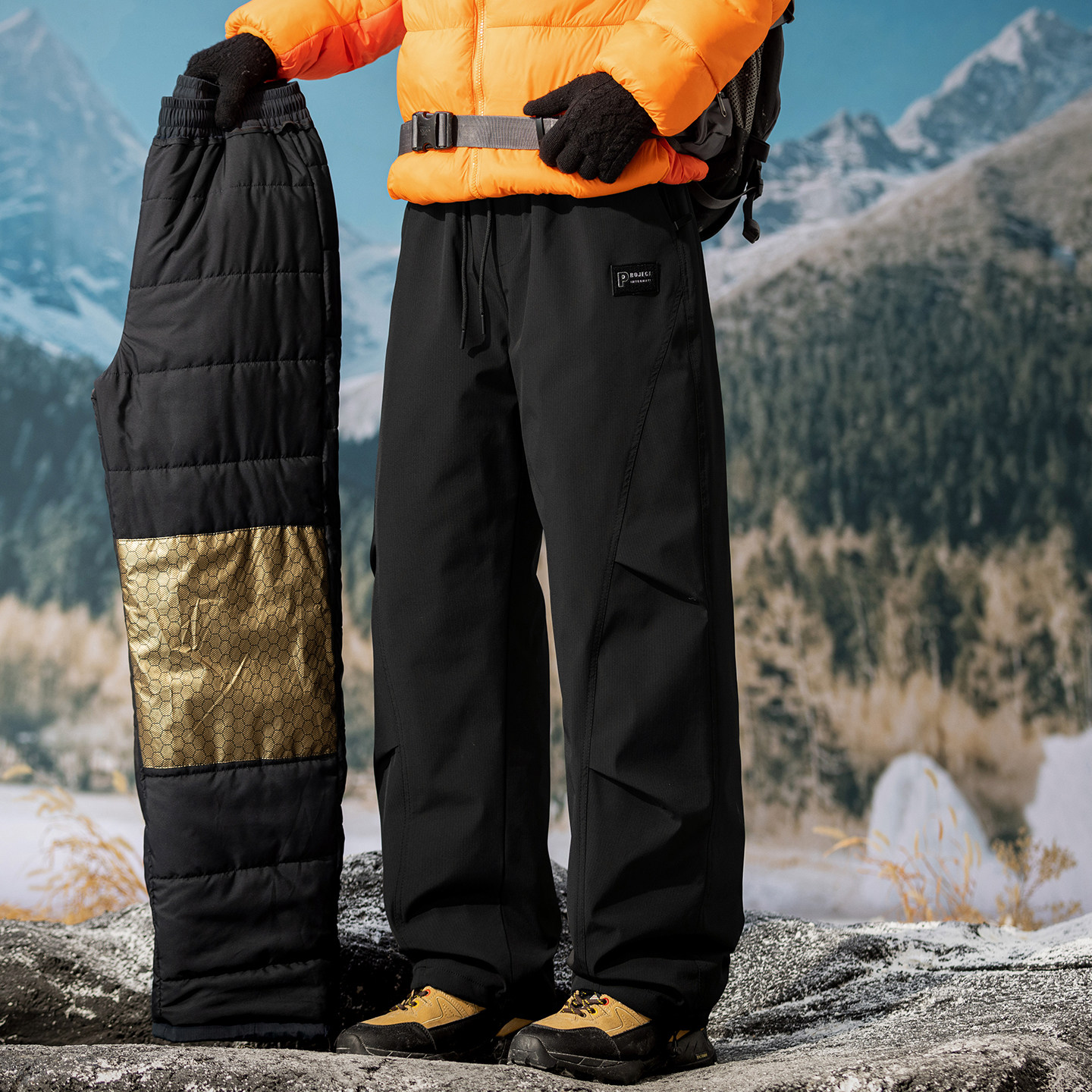 户外工装风羽绒棉裤男士冬季加厚保暖裤防风防水防寒裤男士冲锋裤