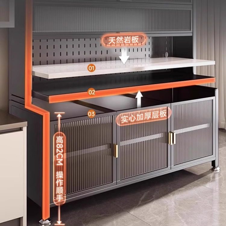 家用厨房收纳柜多功能岩板餐边柜靠墙一体落地防尘储物柜子置物架