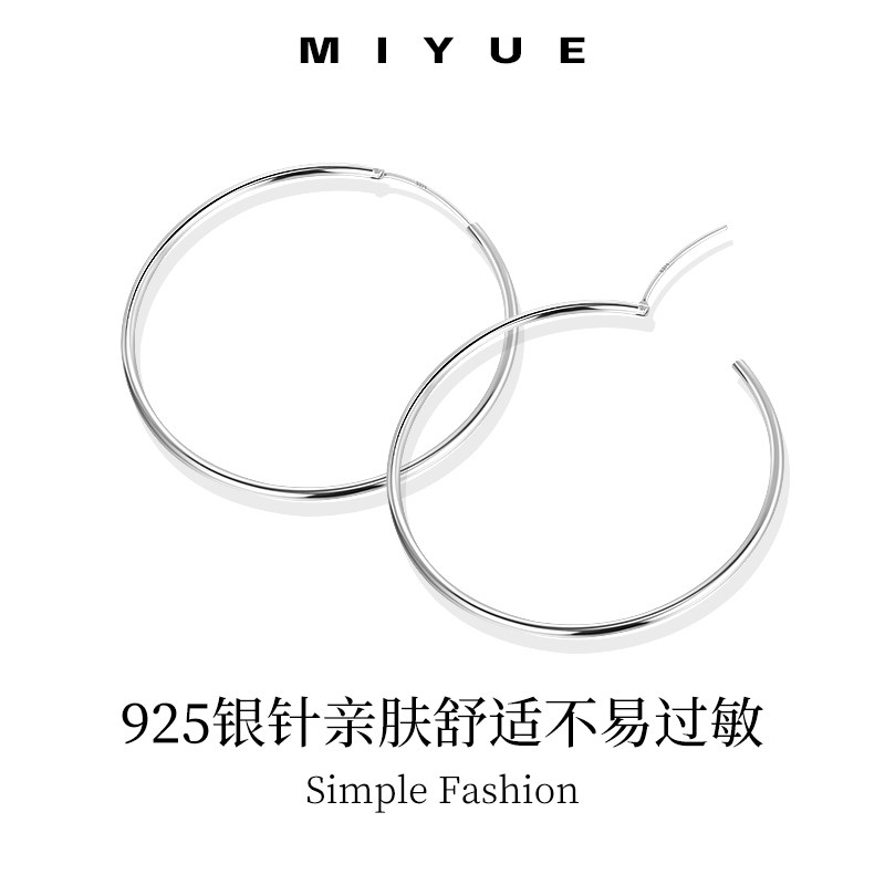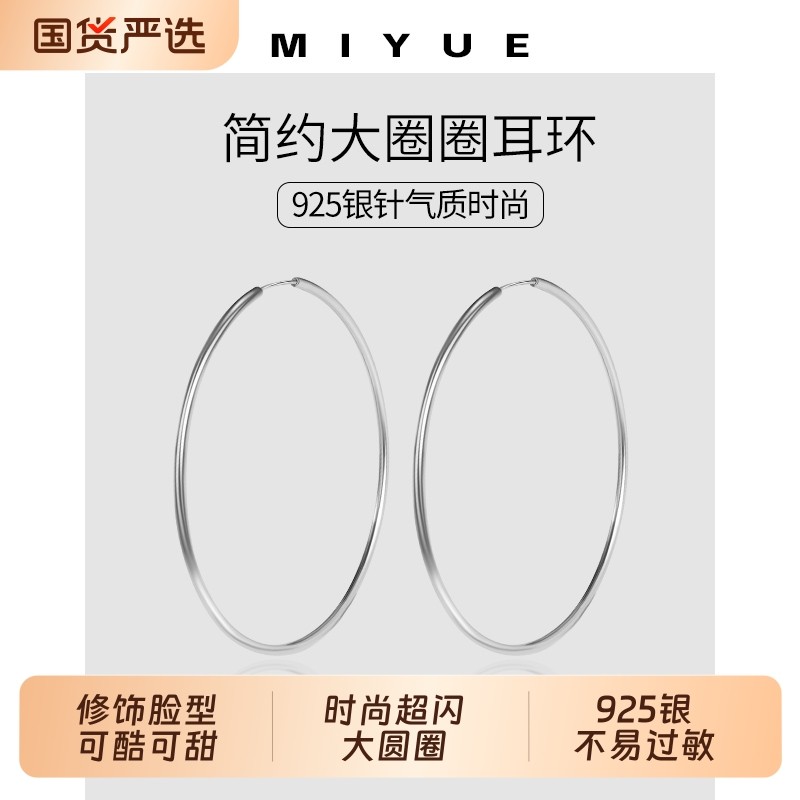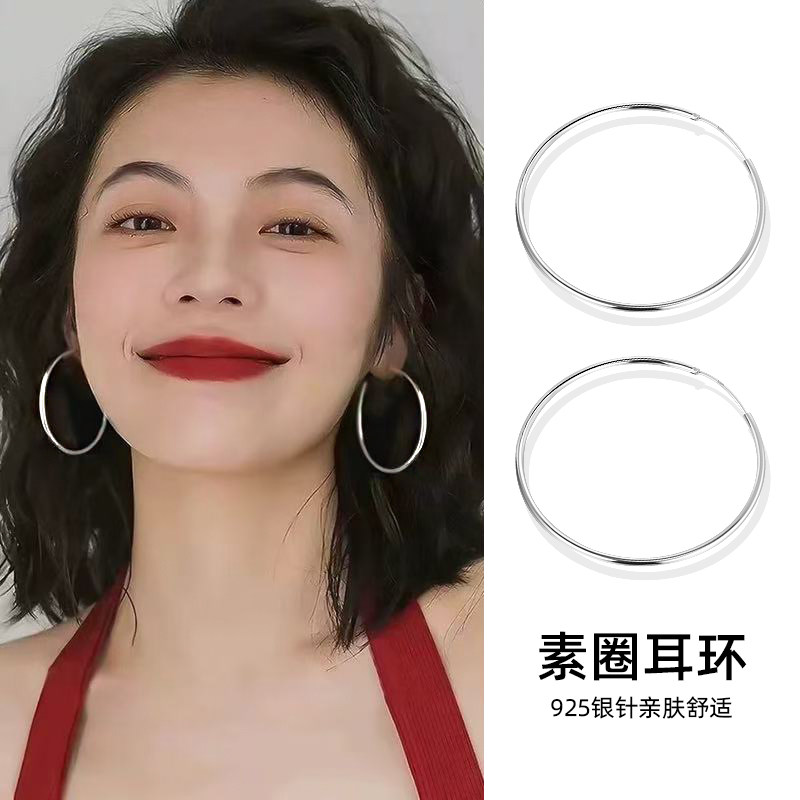 S925纯银素圈耳环耳圈大圆圈女网红爆款气质耳钉2025年新款潮耳饰