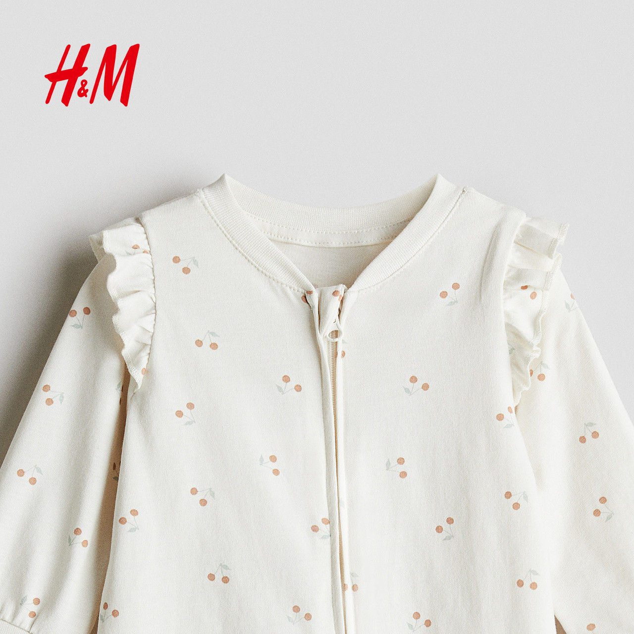 HM童装女婴儿童家居服春季长袖长裤圆领印花连体家居睡衣1238371