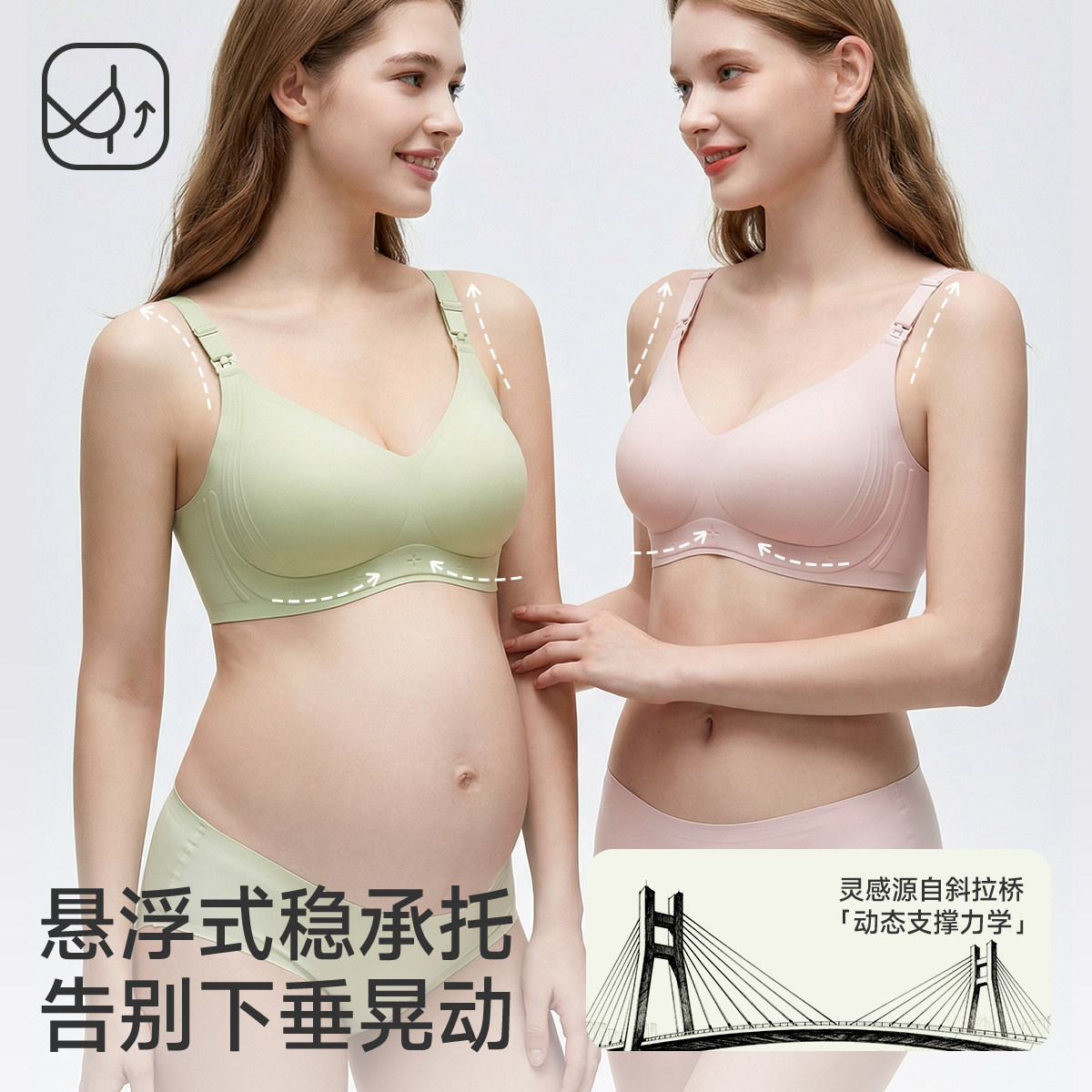 婧麒胶原反重力上托哺乳内衣防下垂聚拢怀孕期喂奶专用孕妇文胸罩
