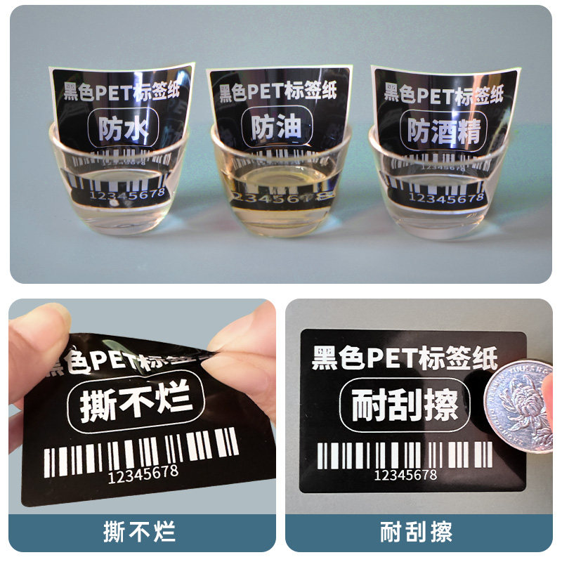 黑色PET不干胶标签20 30 40 50 60 70 80 100条码碳带打印机PET合成纸电子电器铭牌定制加粘防水防油