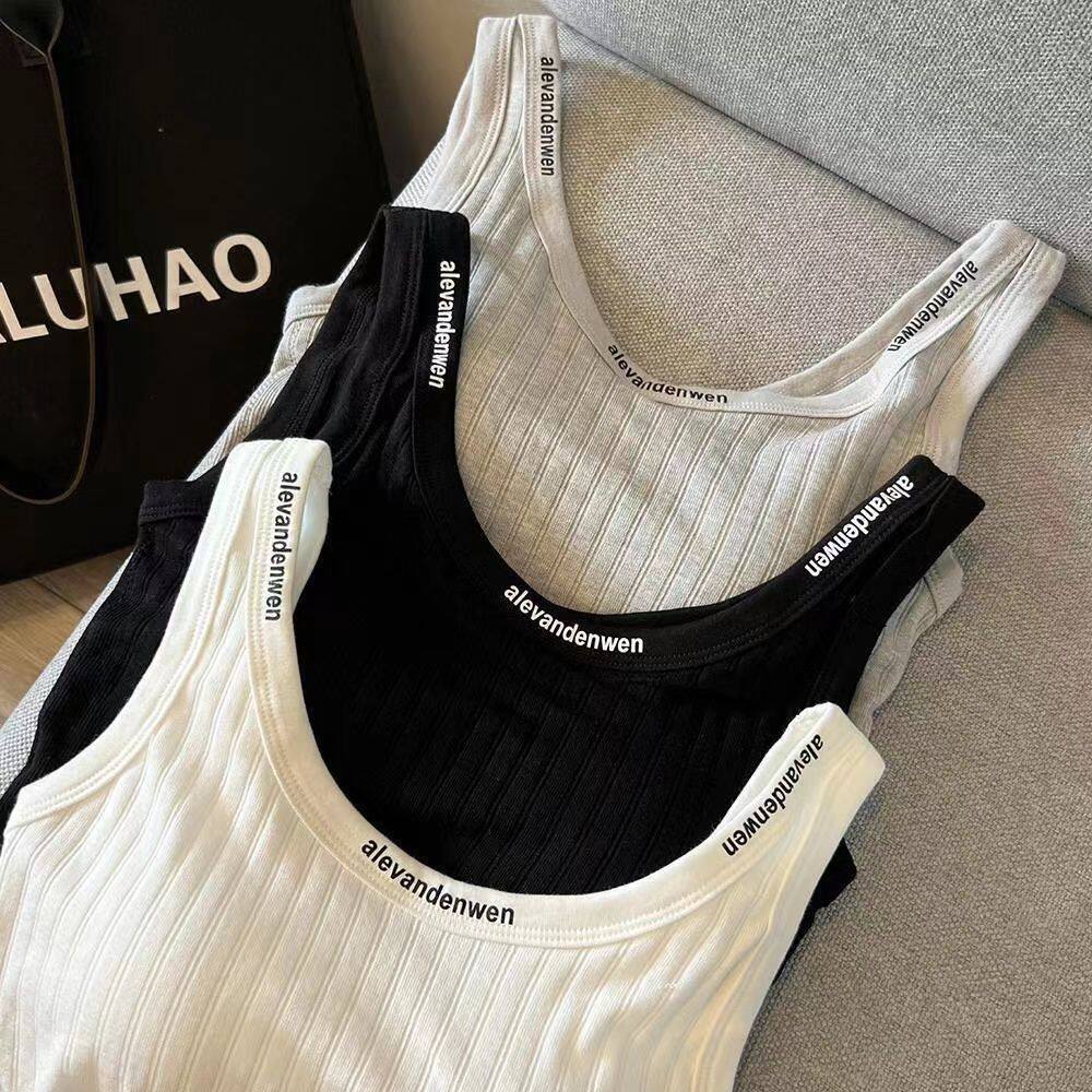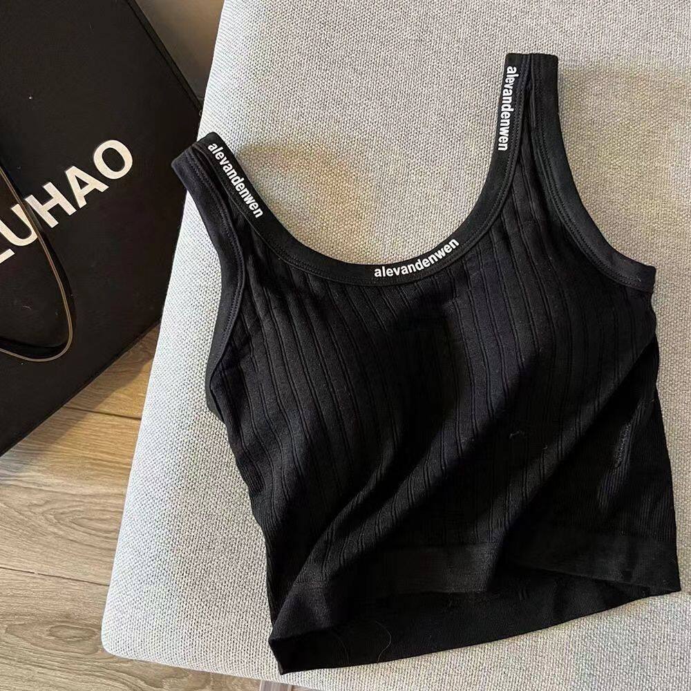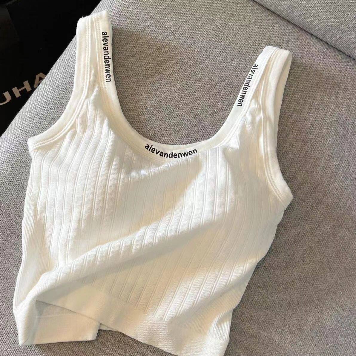 带胸垫白色吊带背心女夏季运动风内搭字母竖条纹休闲运动短款上衣