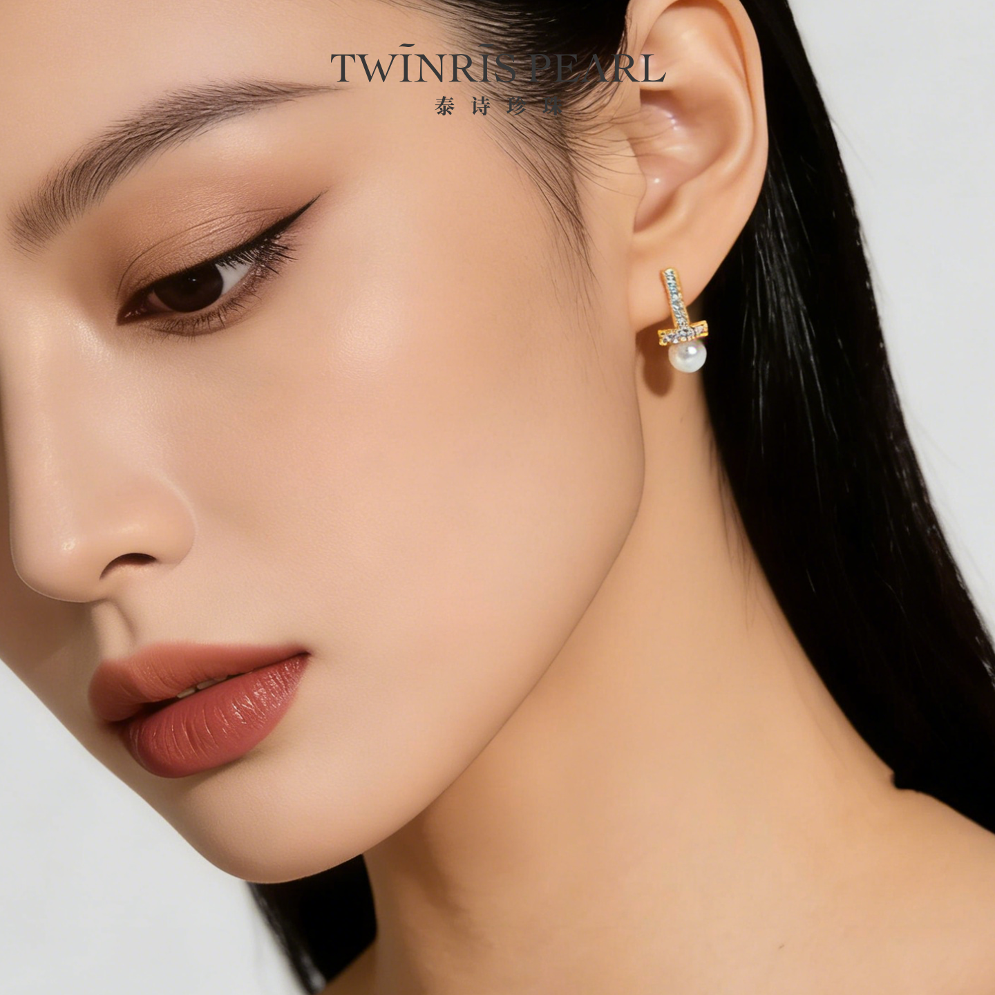 泰诗珍珠时尚款S925银淡水T字耳钉海水珠宝