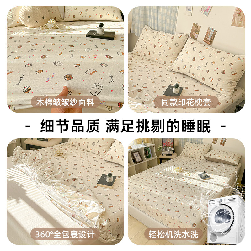 卡通水洗棉床笠罩纯色床垫保护罩床罩防尘罩全包床单床套四季通用