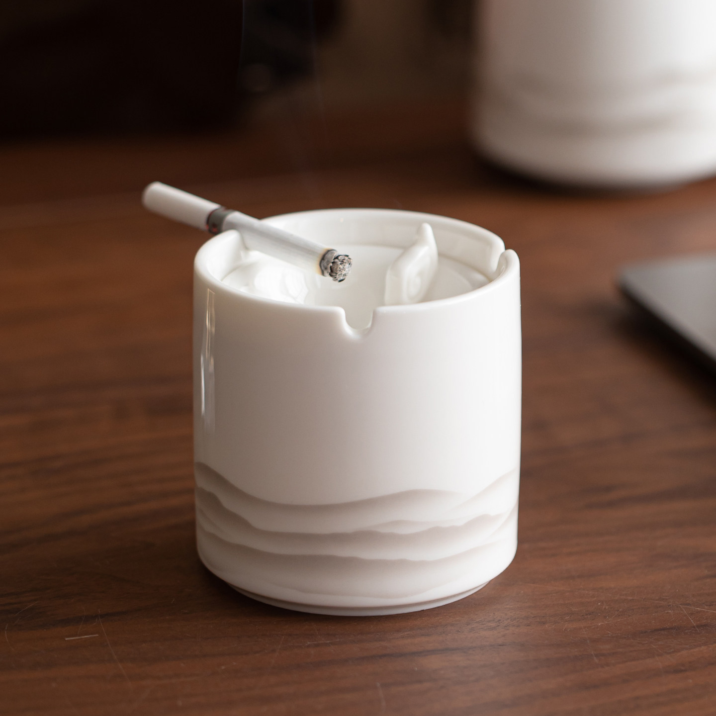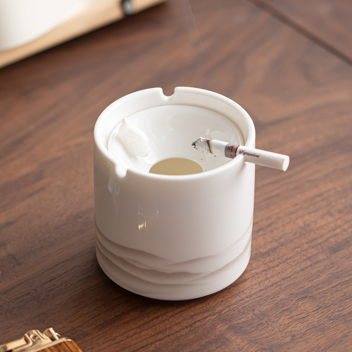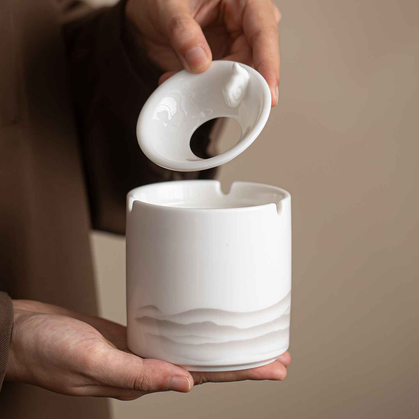 晨翔羊脂玉漏斗式烟灰缸陶瓷带盖防灰飞办公室客厅家用高端大气