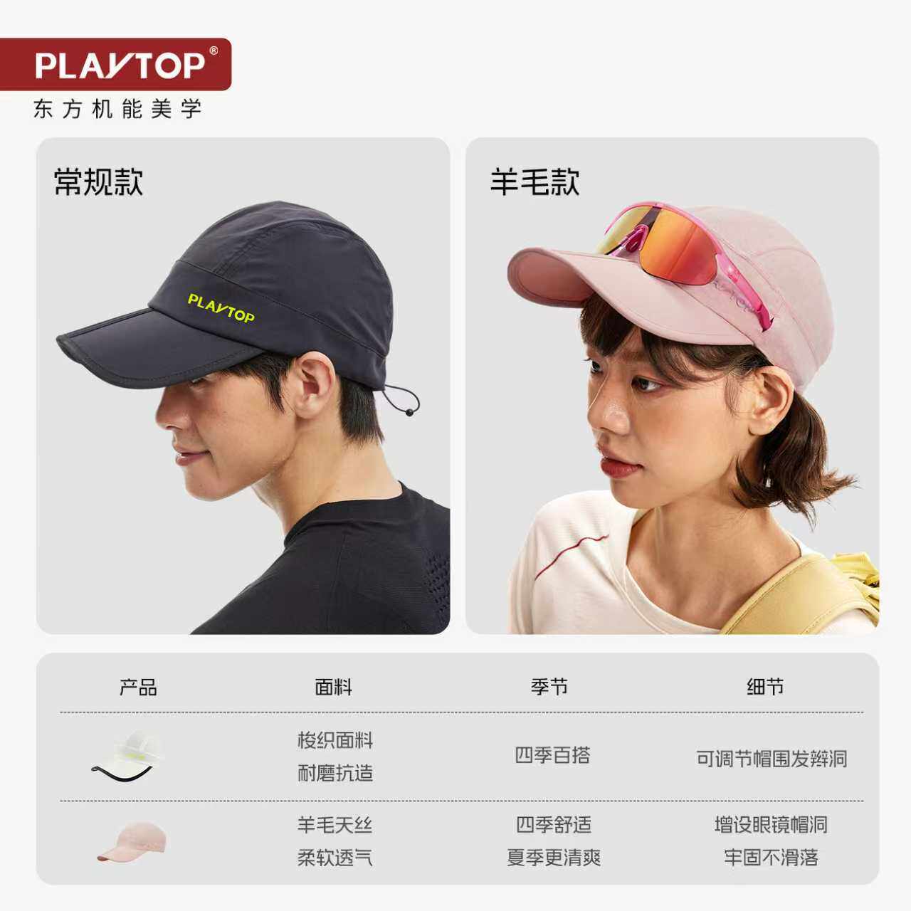 PlayTop速干防晒帽可折叠可机洗户外徒步骑行高尔夫男女鸭舌帽子