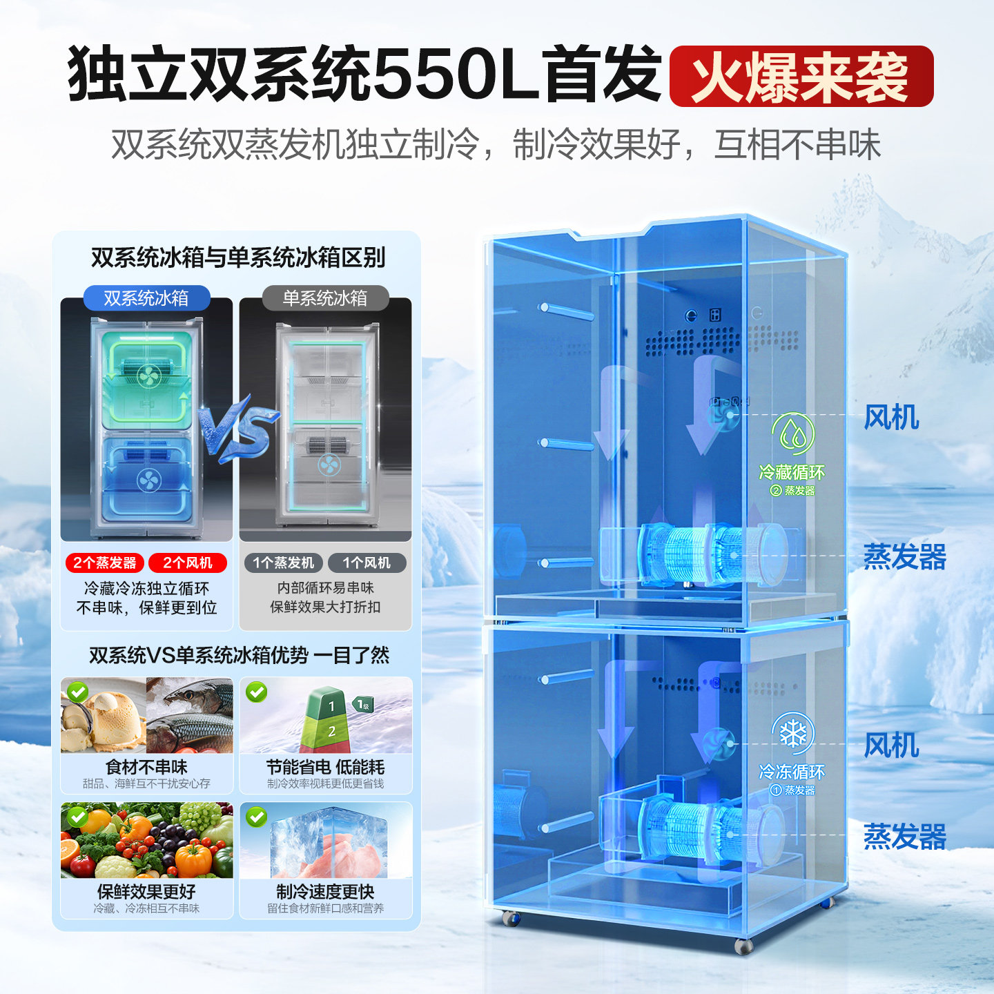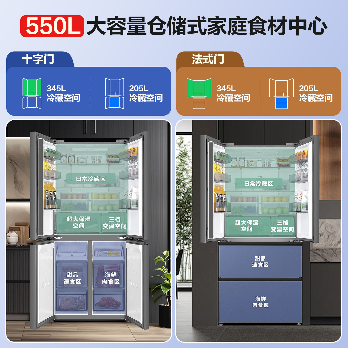 【双循环系统】海尔出品统帅冰箱550L法式多开门一级变频官方正品