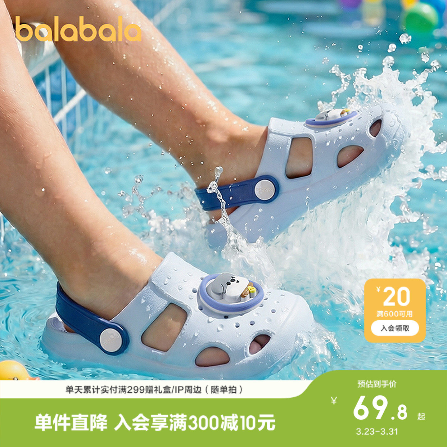 巴拉巴拉童鞋儿童拖鞋男女童2026年新款夏季童趣卡通透气洞洞鞋子