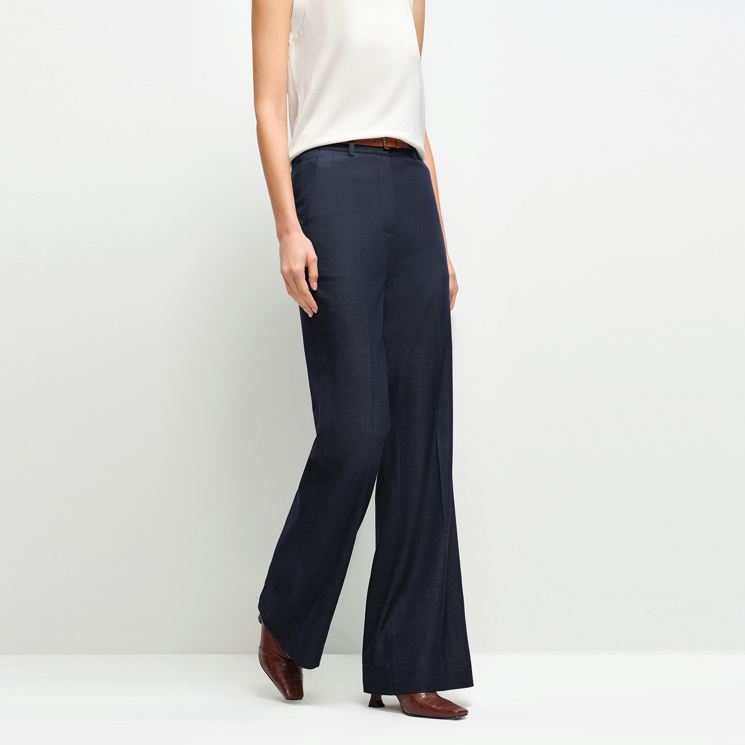 OVV2025春夏新款女装淡人经典舒适简约仿牛仔休闲微喇西裤