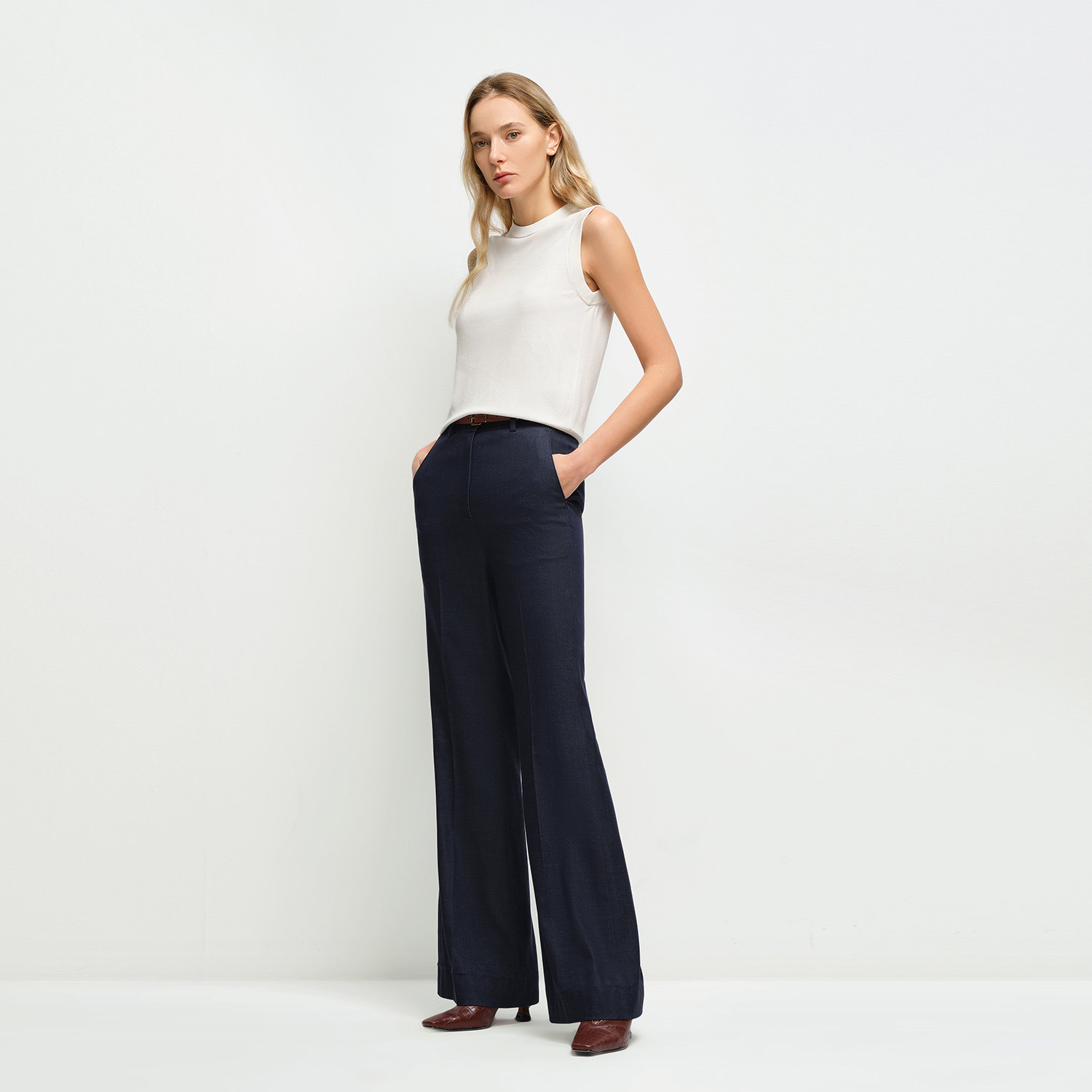 Elwing原创设计感腰头腰带压褶阔腿羊毛西装裤垂感宽松休闲裤